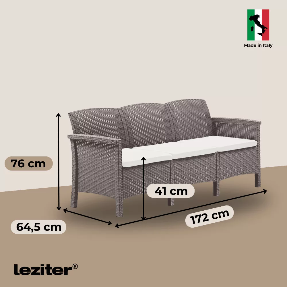 A fröccsöntött polipropilén szerkezet ellenáll az UV-sugárzásnak és az időjárás viszontagságainak, így hosszú távon is megőrzi minőségét. A karbantartásmentes felület nem igényel festést vagy speciális kezelést. A bútorok tisztítása egyszerű, a párnák pedig moshatók, ami praktikus mindennapi használatot tesz lehetővé.