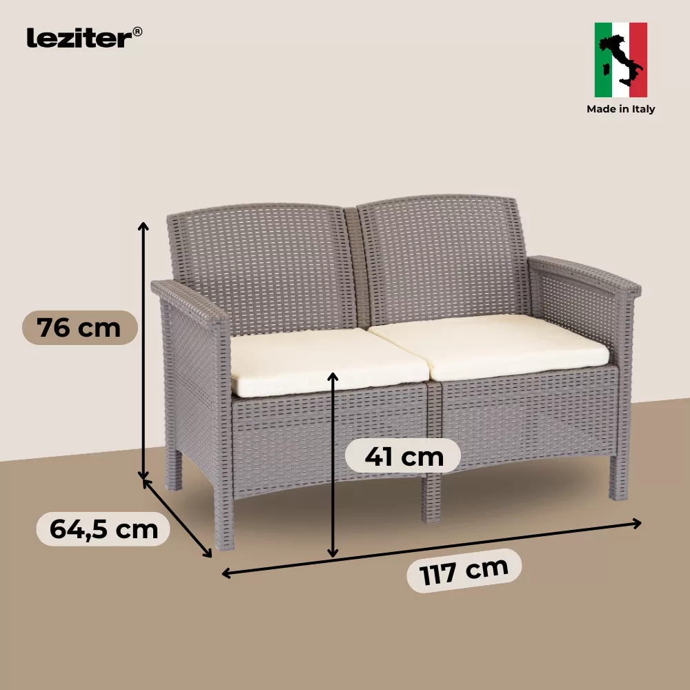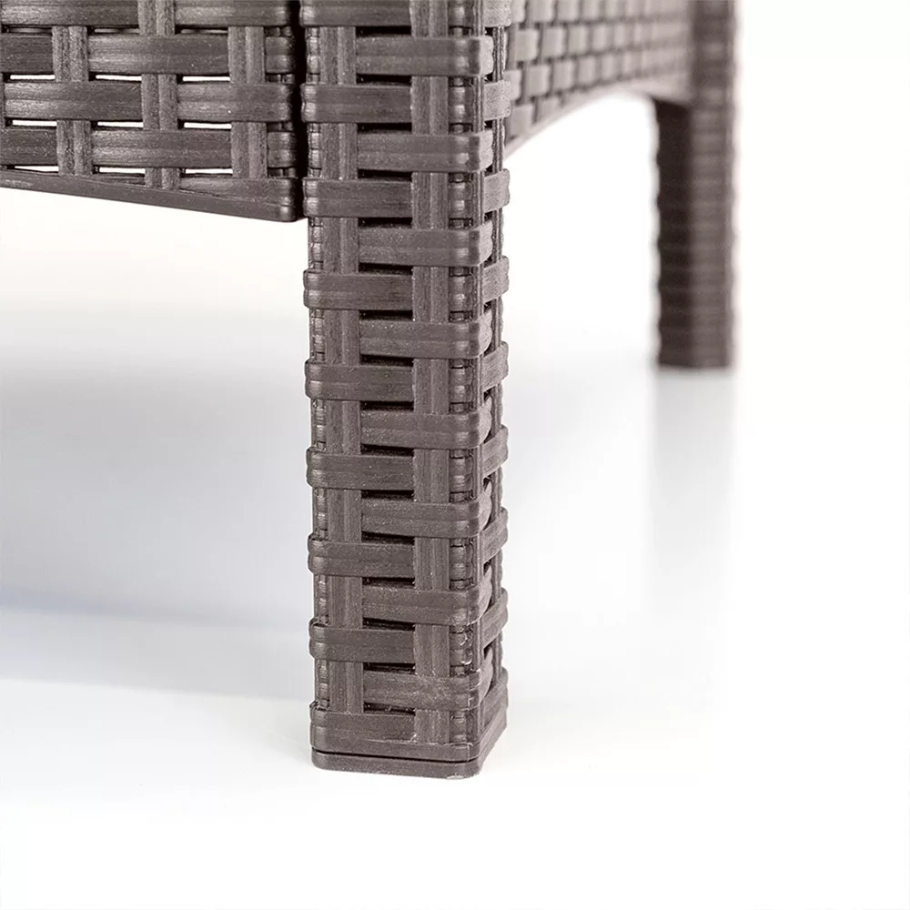Az időjárásálló műanyag rattan ellenáll az UV-sugárzásnak és a környezeti hatásoknak, így hosszú távon is megőrzi minőségét. A karbantartásmentes kialakításnak köszönhetően egész évben használható, felülete pedig egyszerűen tisztítható vízzel vagy enyhe tisztítószerekkel. A stabil szerkezet biztosítja a hosszú élettartamot.