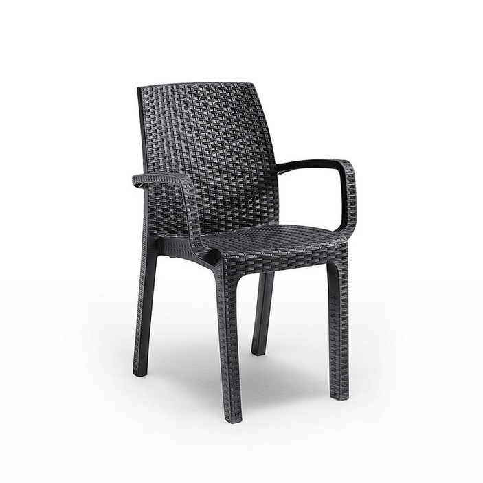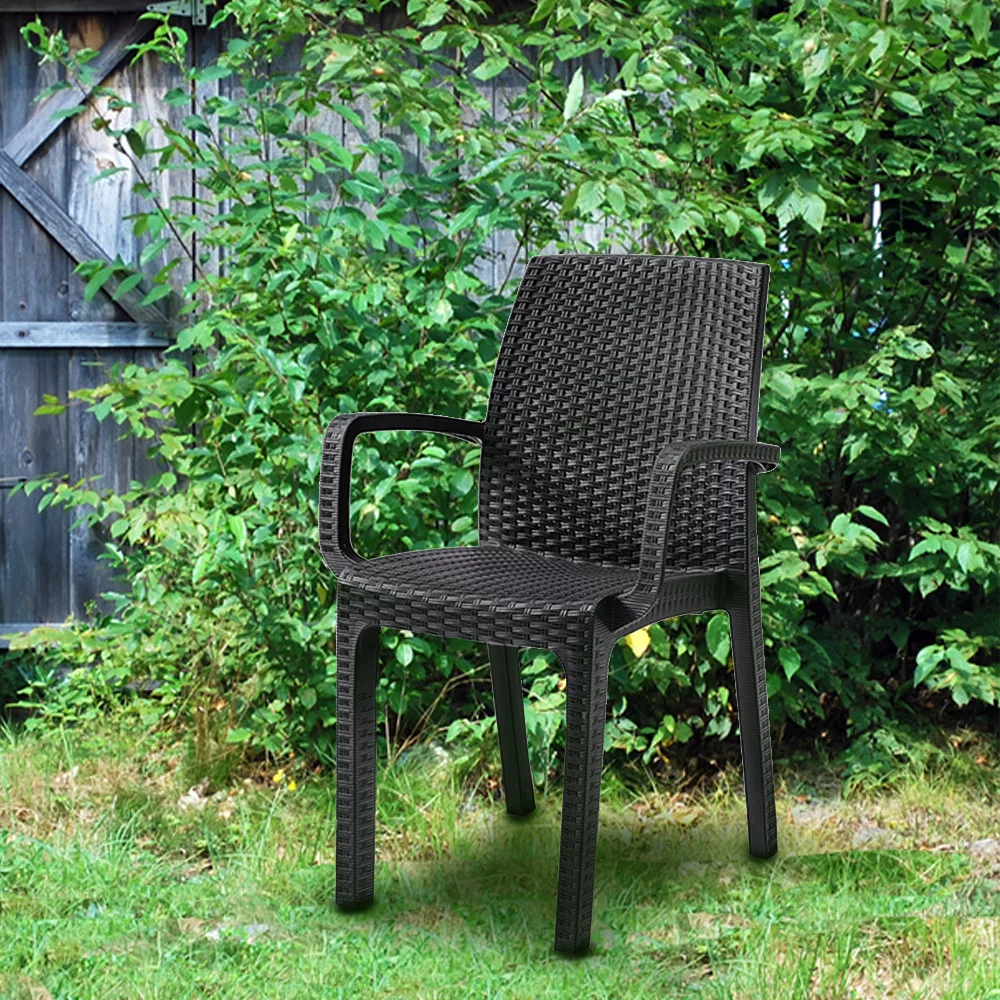 Krzesło wykonane jest z plastikowego polipropylenu, naśladującego efekt naturalnego rattanu. Ma to tę zaletę, że jest to mebel łatwy do przenoszenia, elegancki, a jednocześnie trwały i stabilny, dzięki czemu można go bezpiecznie używać. Tworzywa sztuczne użyte do ich produkcji są w dużej mierze poddawane recyklingowi, co czyni je bardziej zrównoważonym wyborem. Dodatkową zaletą mebli rattanowych jest to, że są wodoodporne, odporne na ekstremalne warunki pogodowe i promienie UV oraz łatwe do czyszczenia.