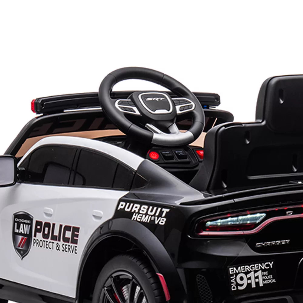 Elektryczny samochód policyjny Dodge to marzenie każdego małego dziecka. Ten zasilany akumulatorem 12 V zabawkowy samochód ma realistyczny policyjny wygląd, w tym migające niebiesko-czerwone światła, syrenę i funkcje muzyczne zintegrowane z odtwarzaczem MP3. Trzy ustawienia prędkości (wolna, średnia, szybka) pozwalają dziecku na bezpieczną jazdę z różnymi prędkościami. Dla łatwej kontroli, pilot zdalnego sterowania 2,4 GHz pozwala również rodzicom monitorować pojazd.