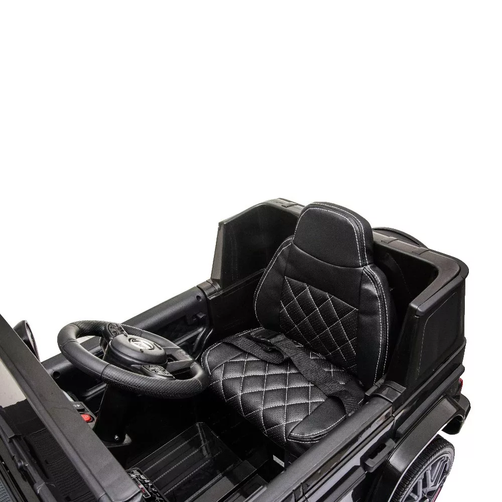 Dwa silniki o łącznej mocy 40 W można wygodnie ładować za pomocą dołączonego adaptera. Samochód elektryczny Mercedes G może poruszać się z prędkością do 7 km/h przez około 90 minut, w zależności od wagi małego kierowcy i warunków terenowych. Po tym czasie nie wymaga żadnej konserwacji poza okazjonalnym czyszczeniem.