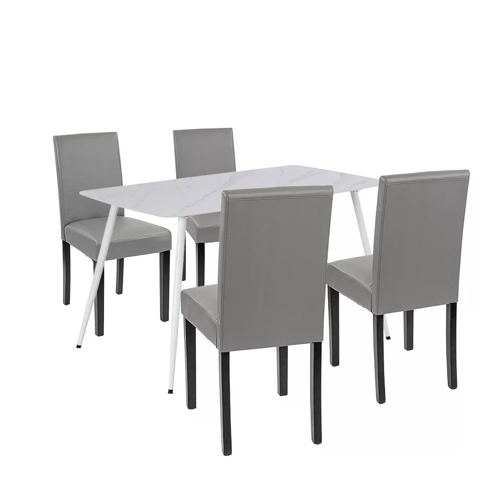 Masz dość chwiejących się stołów i niewygodnych, skrzypiących krzeseł, które psują atmosferę wspólnych posiłków? Podczas rodzinnych obiadów, uroczystych okazji lub spotkań z przyjaciółmi wszyscy szukamy komfortu i stabilności - ale niestabilny stół lub trudne do czyszczenia powierzchnie mogą tylko powodować irytację. Jeśli mieszkasz z małymi dziećmi lub częstymi gośćmi, może to być ciągłe źródło stresu. Zestaw do jadalni Leziter Megan 4+1 w kolorze białym i szarym rozwiązuje ten problem raz na zawsze: nowoczesny, stylowy zestaw z czterema wygodnymi krzesłami Kelly i solidnym, wysokiej jakości stołem do jadalni - idealny do domu, biura lub gościnności.