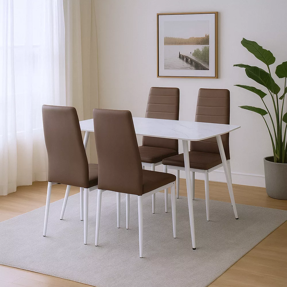 Zestaw jadalniany Jenna 4+1 - brązowy design, biały kontrast, czysty charakter