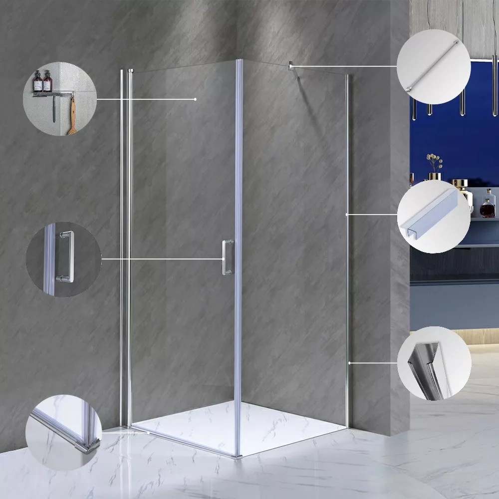 Az üveg és a profilok tisztításához enyhe mosogatószer, semleges üvegtisztító vagy hígított citromsavas oldat és puha mikroszálas kendő javasolt. Zuhanyzás után gumilehúzóval távolítsd el a vizet a vízkő ellen. Kerüld az erősen lúgos/savas vegyszereket, dörzsszivacsot és oldószereket.
