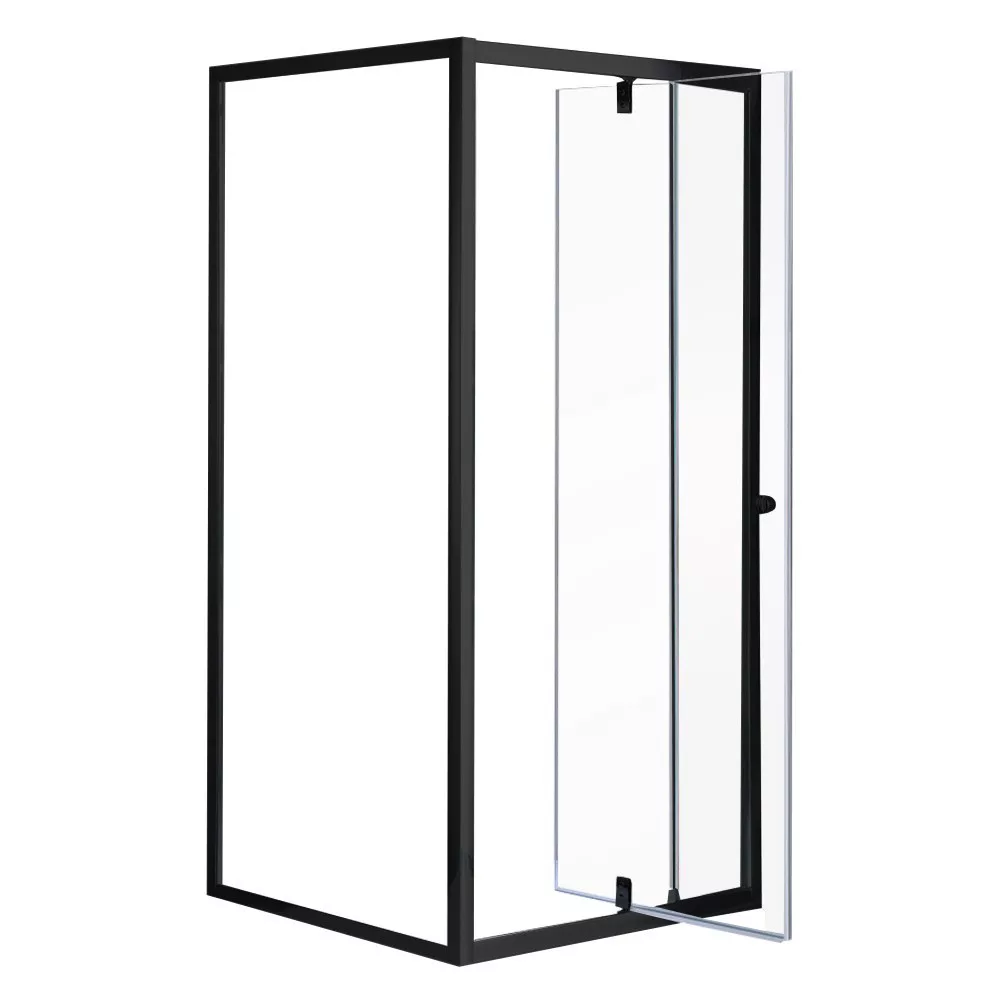 Czarna kwadratowa kabina prysznicowa Flexi 80x80 cm - czysty wygląd, z regulowanymi drzwiami i stałymi ściankami, bez brodzika