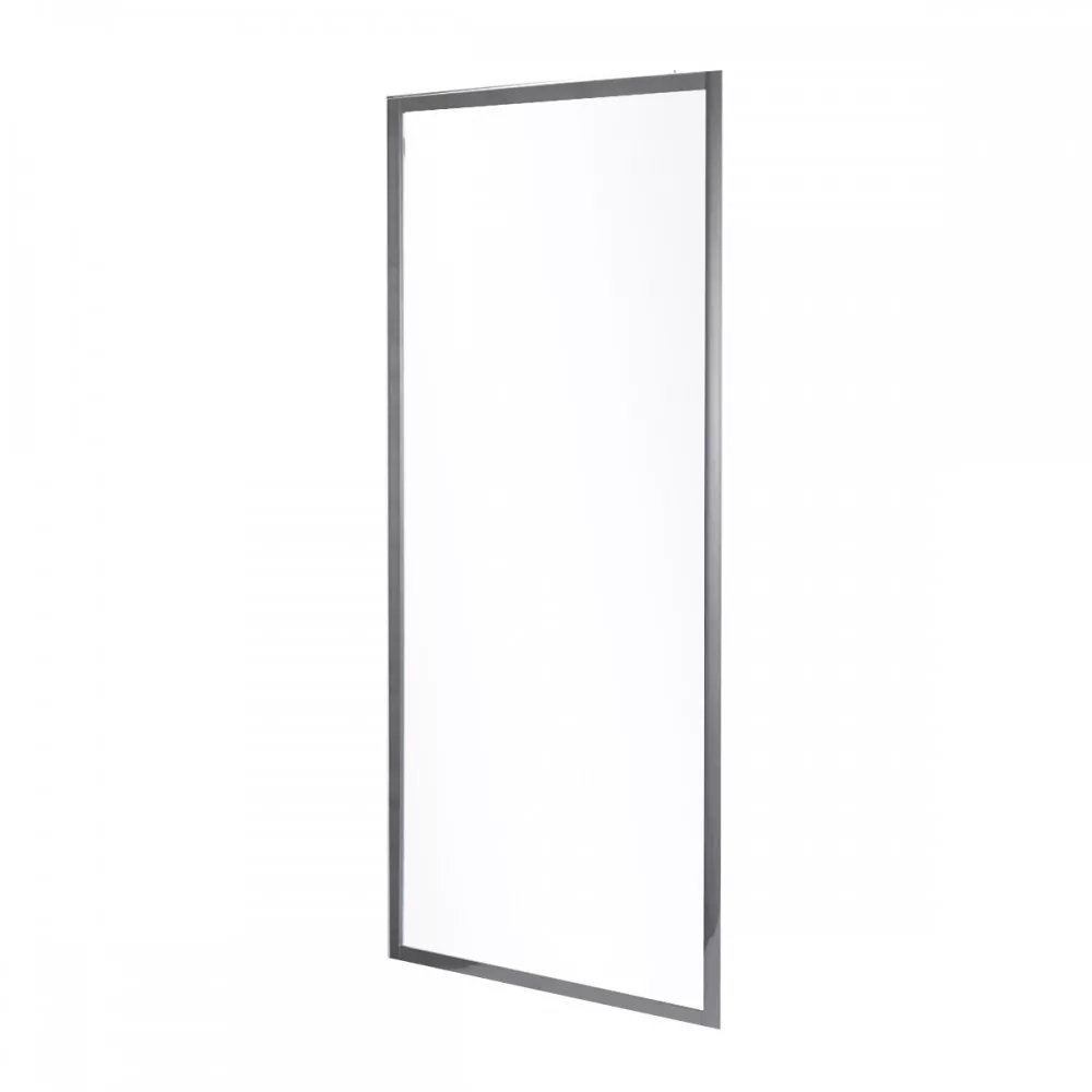 Ścianka prysznicowa z chromowaną ramą aluminiową i przezroczystym, bezpiecznym szkłem hartowanym o grubości 5 mm. Model ma szerokość 80 cm i wysokość 185 cm.