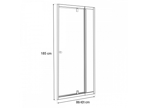 Samodzielne drzwi prysznicowe o szerokości regulowanej w zakresie 86-101 cm, z przezroczystym szkłem o grubości 6 mm, chromowanymi profilami aluminiowymi i uchwytem drzwiowym.