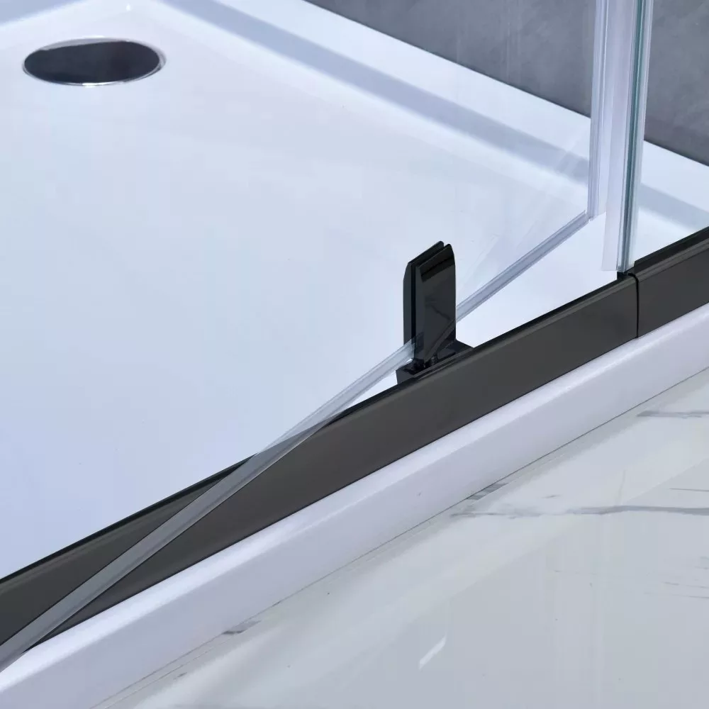Bezpieczne szkło hartowane gwarantuje trwałość, a chromowane metalowe zawiasy i aluminiowe profile zapewniają stabilność konstrukcji. Magnetyczny zamek drzwi i plastikowa pułapka wodna zapewniają doskonałe uszczelnienie i szczelność.