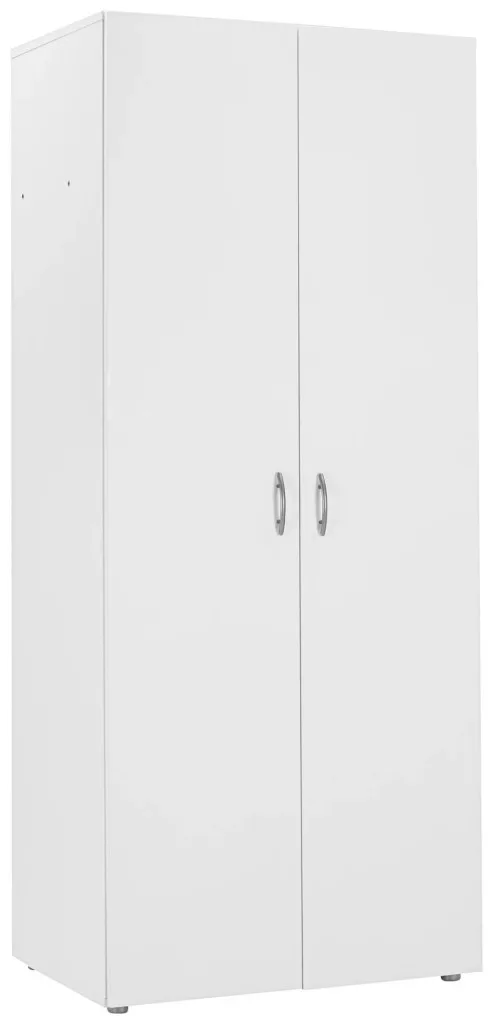 Szafa Family to idealny wybór dla każdego, kto szuka wydajnego rozwiązania do przechowywania na małej przestrzeni.Dzięki kompaktowej konstrukcji i białemu kolorowi , szafa o szerokości 74 cm i wysokości 182 cm harmonijnie pasuje do każdej sypialni, pokoju gościnnego lub przedpokoju. Dwudrzwiowa konstrukcja , praktyczny drążek na wieszaki i górna półka pomagają utrzymać porządek w ubraniach, płaszczach, pudełkach i innych akcesoriach.