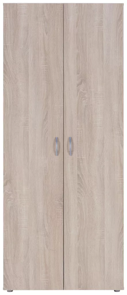 Szafa Family to idealny wybór dla każdego, kto szuka wydajnego rozwiązania do przechowywania na małej przestrzeni. Przy szerokości 74 cm i wysokości 182 cm, kompaktowa konstrukcja i naturalny kolor dębu sonoma tej szafy będzie harmonijnie pasować do każdej sypialni, pokoju gościnnego lub przedpokoju. Za dwudrzwiową konstrukcją kryje się praktyczny drążek na wieszaki i górna półka, które pomagają uporządkować ubrania, płaszcze, pudełka i inne akcesoria.