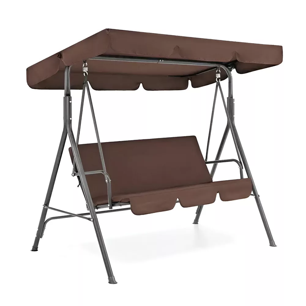 Poliestrowy baldachim nie tylko zapewnia ochronę przed szkodliwymi promieniami UV, ale także oferuje niewielkie schronienie podczas lżejszych opadów deszczu. Materiał jest odporny na blaknięcie pod wpływem światła słonecznego, dzięki czemu kolor huśtawki przez długi czas zachowa swój pierwotny zielony odcień.