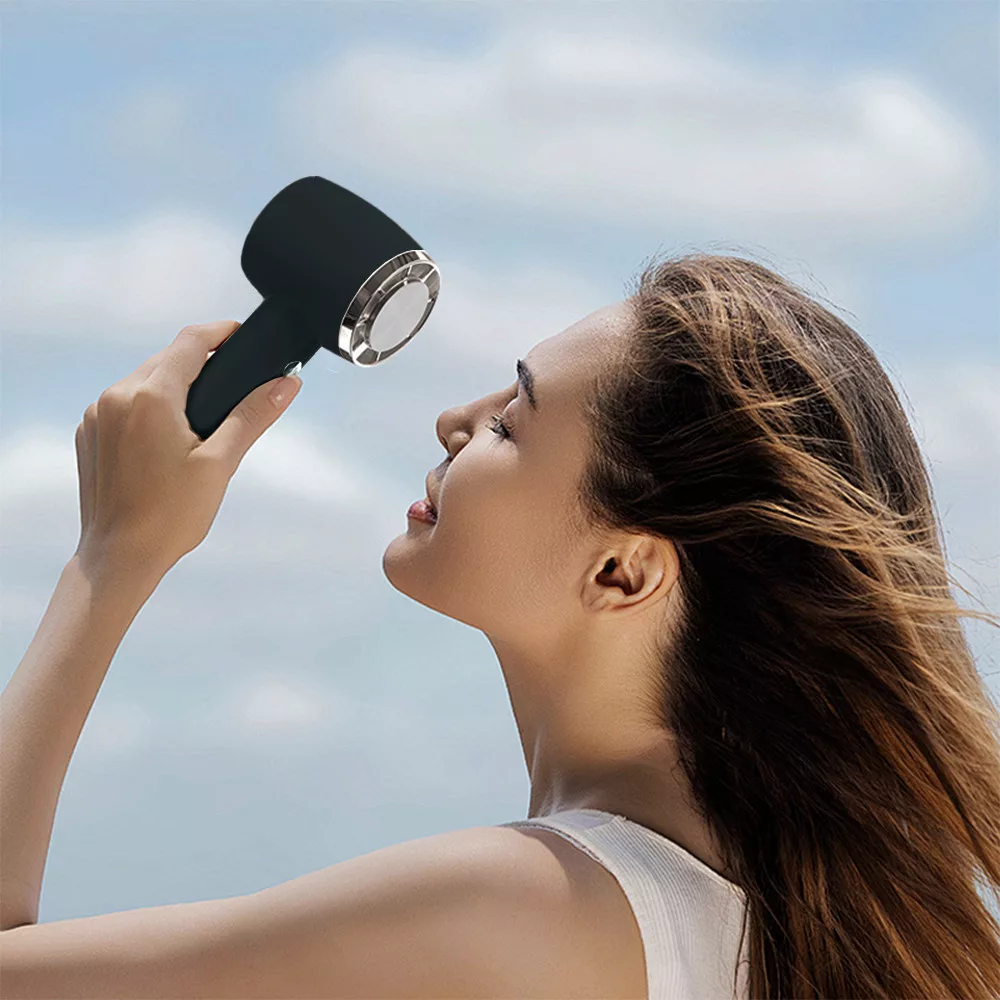 Dziękiregulowanemu kątowi nachylenia wentylatora można nie tylko używać go w dłoni, ale także stabilnie postawić na biurku - dzięki czemu można cieszyć się efektem chłodzenia podczas pisania, pracy lub nakładania makijażu.