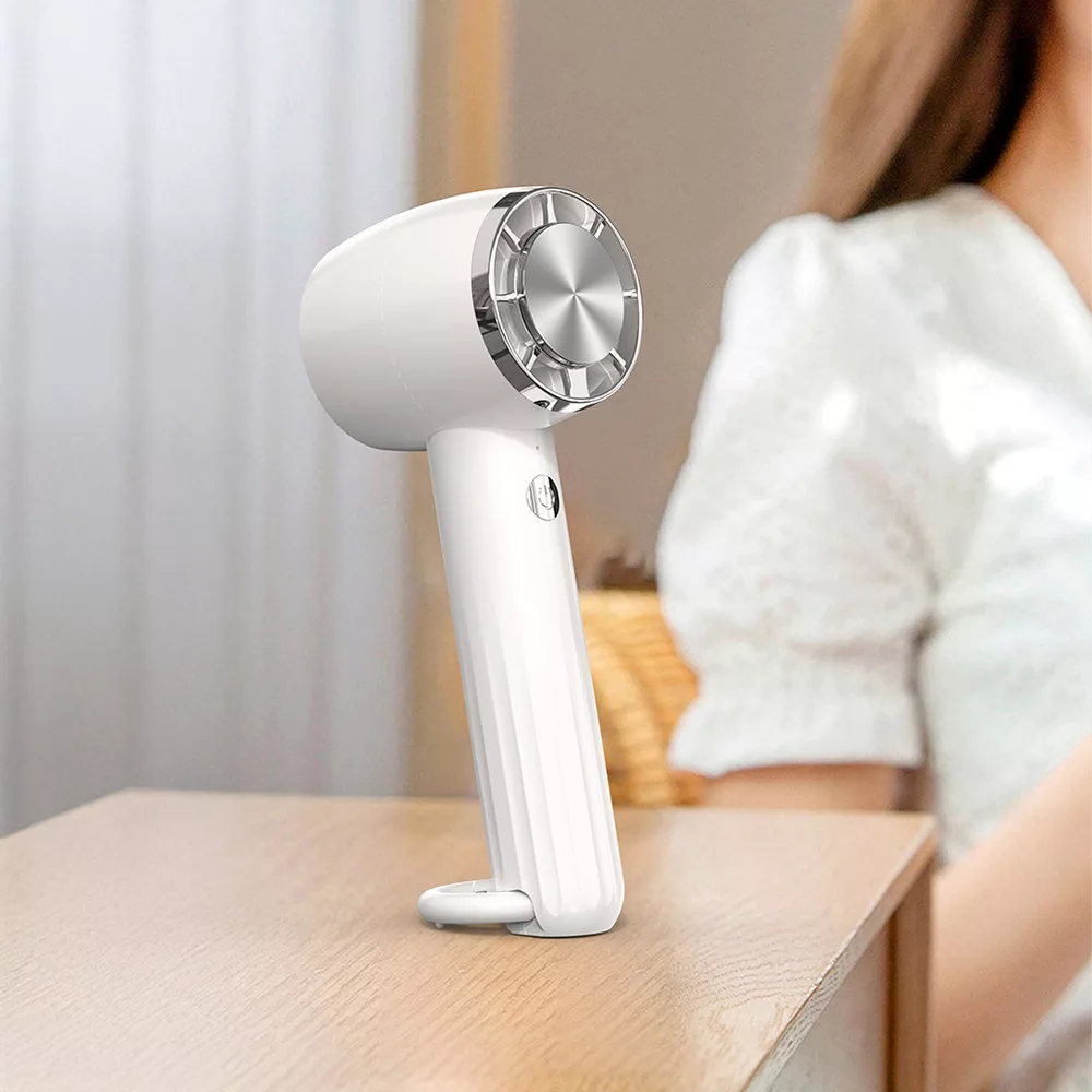 Dzięki regulowanemu kątowi nachylenia wentylatora, możesz nie tylko używać go w dłoni, ale także postawić go stabilnie na biurku - dzięki czemu możesz cieszyć się efektem chłodzenia podczas pisania, pracy lub nakładania makijażu.