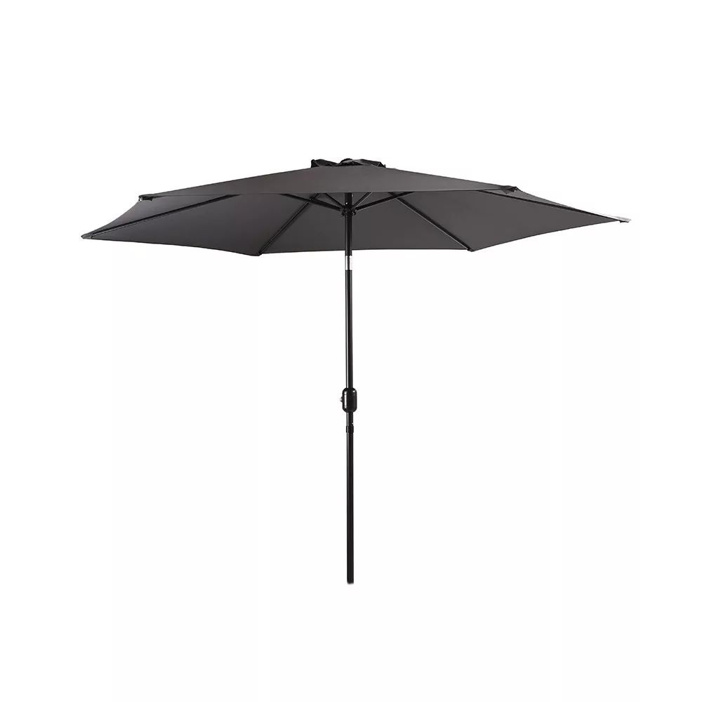 Parasol ogrodowyGina ośrednicy 3metrów ma solidną stalową ramę i 6wytrzymałych stalowych żeber zapewniających stabilność nawet przy lekkim wietrze. Dzięki mechanizmowi korbowemu można go otworzyć i złożyć w kilka sekund, a odchylana głowica pomaga zapewnić, że cień jest zawsze we właściwym miejscu.Plandeka poliestrowa 160 g/m² jest wodoodporna i chroniona przed promieniowaniem UV, dzięki czemu zapewnia ochronę nie tylko przed deszczem, ale także przed szkodliwymi promieniami słonecznymi.
