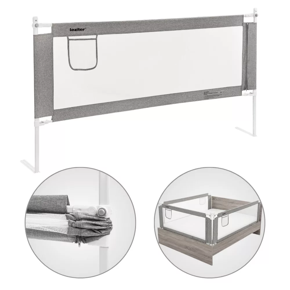 A Leziter leesésgátló védőkorlát ágyhoz 180 cm-es kivitelben megoldást nyújt az ágyból való leesés megelőzésére. Segít biztonságos alvási környezetet kialakítani, miközben a gyermek mozgását nem korlátozza.