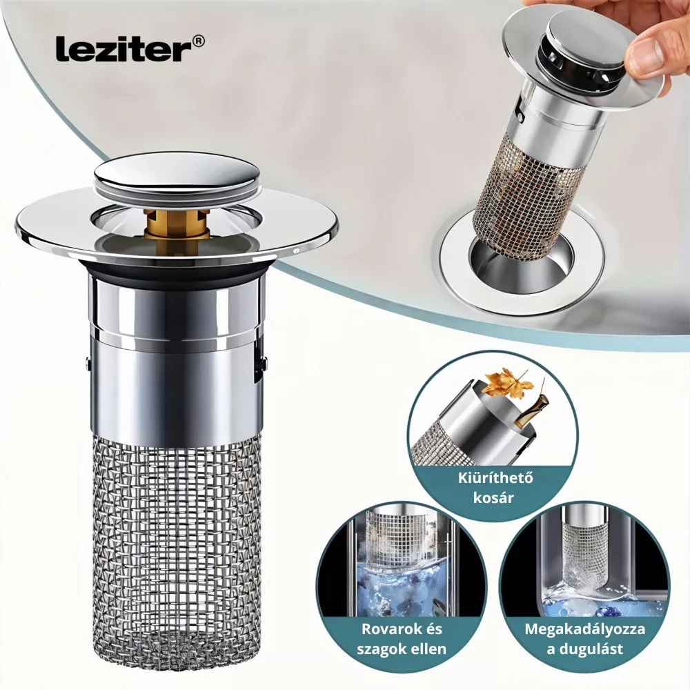 Dwustopniowy system filtrowania nie tylko zatrzymuje brud, ale także zapewnia, że cenne przedmioty (np. kolczyki lub pierścionki) nie zgubią się w odpływie. Czyszczenie jest łatwe: wystarczy wyjąć filtr, przepłukać i gotowe!