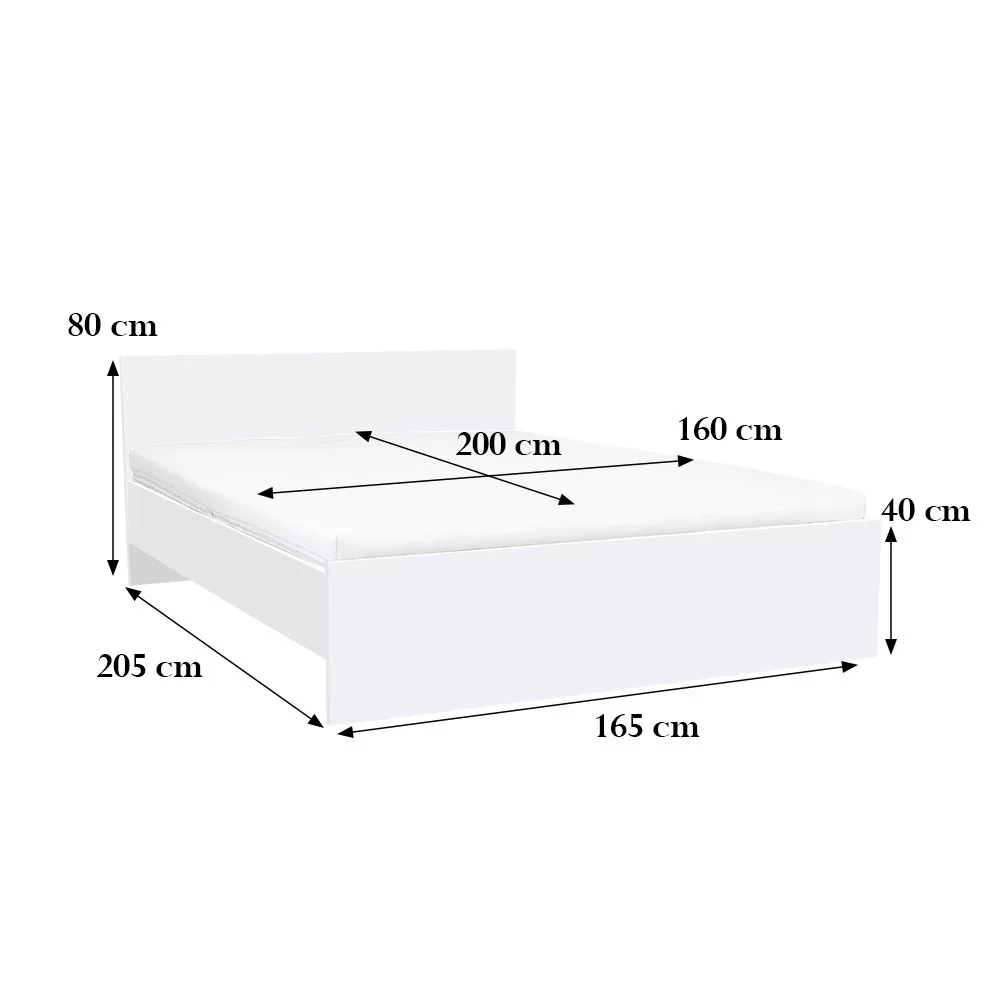 Łóżko Miami wykonane jest z wysokiej jakości płyty meblowej, z białymi panelami bocznymi, białym wezgłowiem i zakończeniem łóżka. Rama łóżka ma wymiary 205 x 165 cm. Rama łóżka ma wymiary 80 x 165 cm. Wymiary materaca pasującego do ramy łóżka: 200 x 160 cm