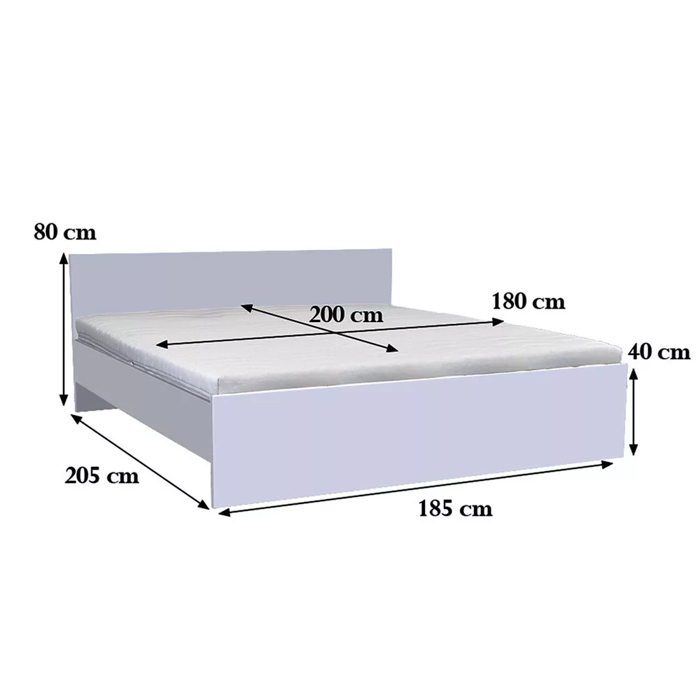 Rama łóżka: 205 x 185 cm, Oparcie łóżka: 80 x 185 cm, Materac (zalecany rozmiar): 200 x 180 cm. |