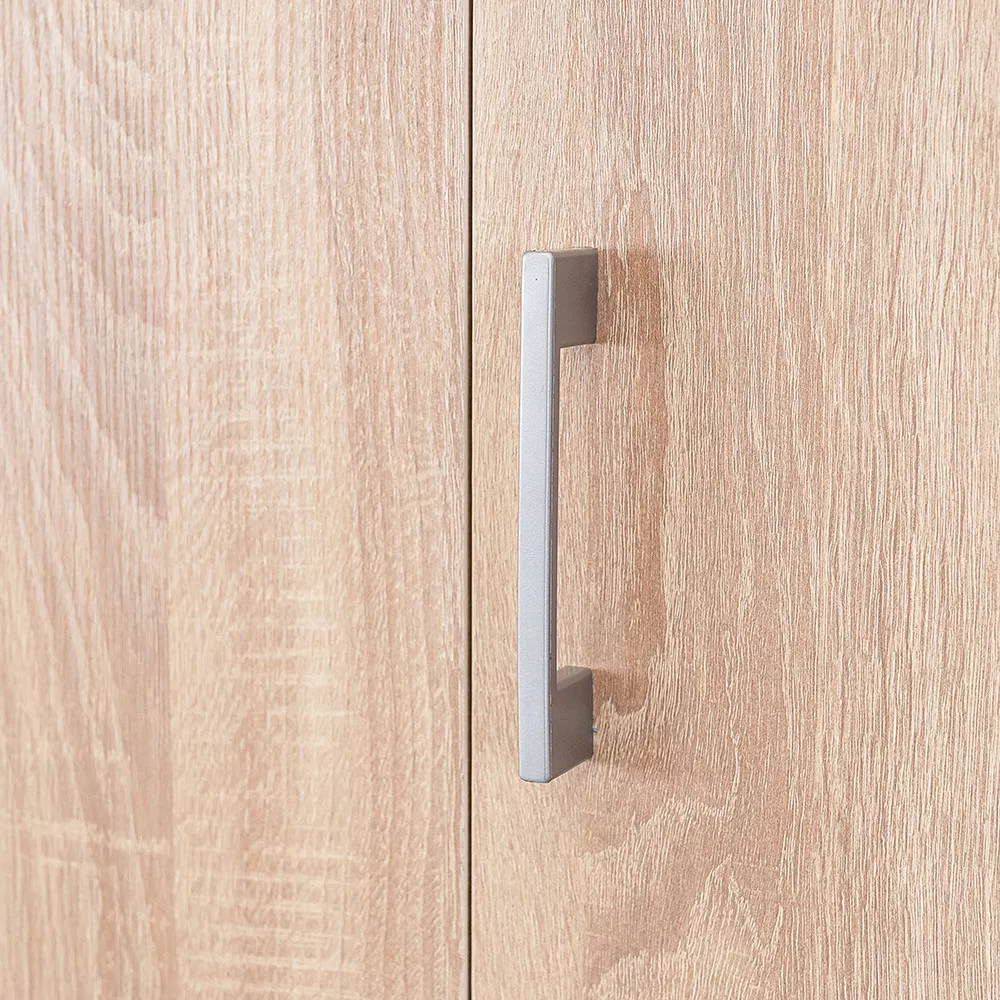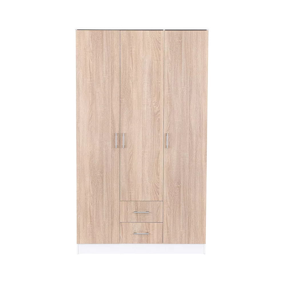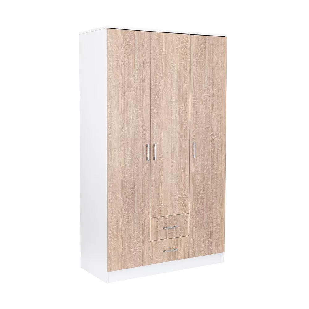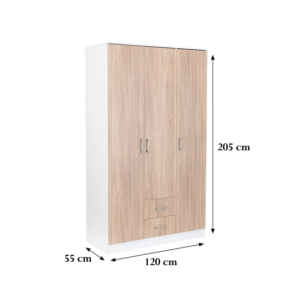 Połączenie eleganckiegofrontu w kolorze dąb sonoma ibiałego korpusu z efektem drewna tworzy idealną harmonię w salonie lub sypialni. Szafa owysokości 205 cm, szerokości 120 cm i głębokości 55 cm to idealny wybór dla każdego, kto chce uporządkować swoje ubrania i akcesoria.
