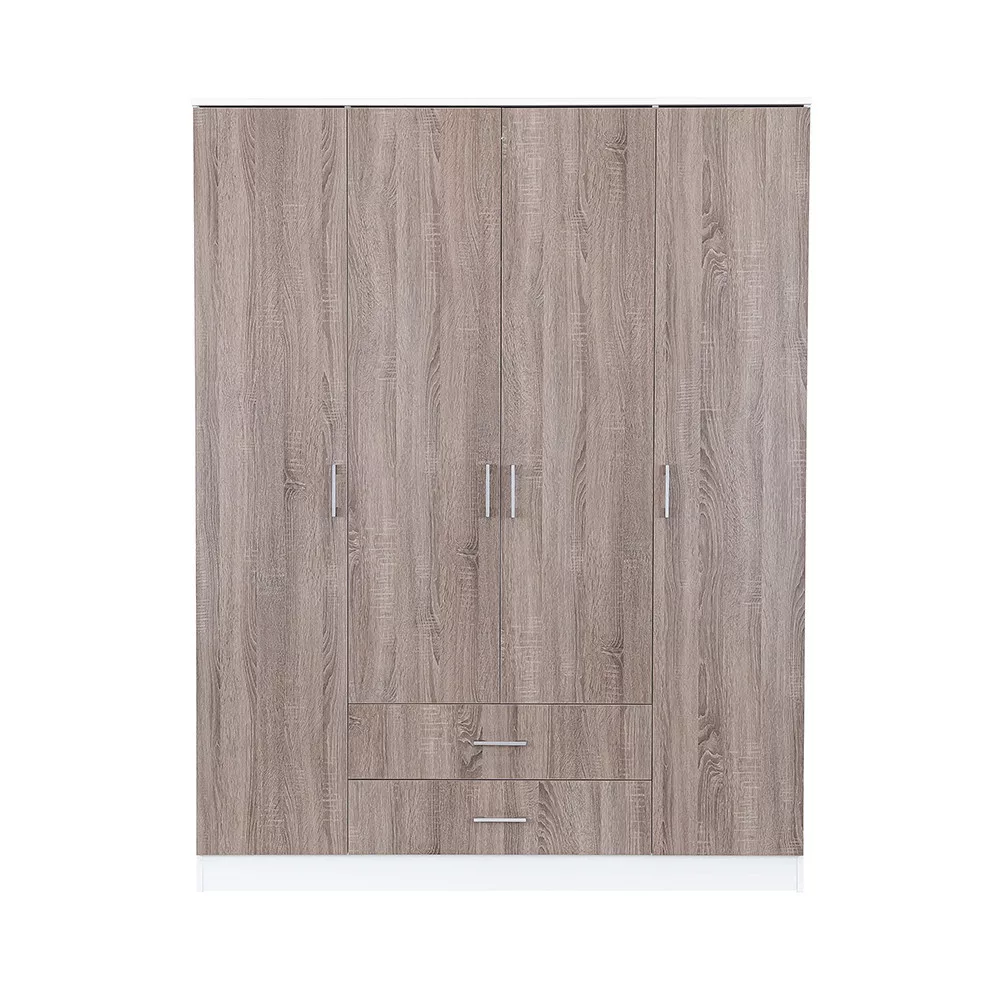 Połączenie eleganckiegofrontu w kolorze dąb york ibiałego korpusu z efektem drewna tworzy idealną harmonię do salonu lub sypialni. Szafa owysokości 205 cm, szerokości 160 cm i głębokości 55 cm to idealny wybór dla każdego, kto chce uporządkować swoje ubrania i akcesoria.