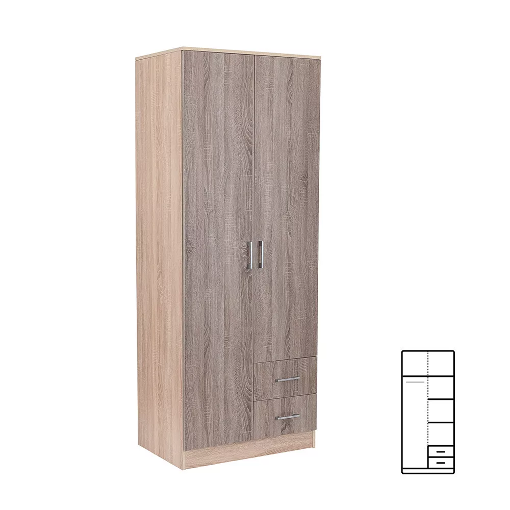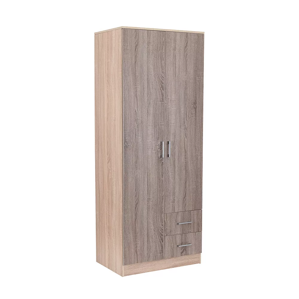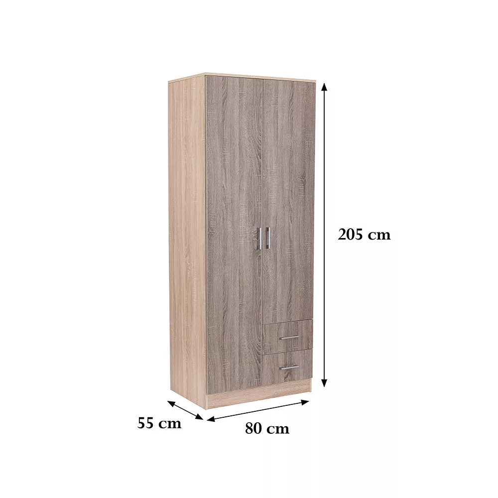 Połączenie eleganckiego frontu w kolorze dąb york i korpusu w kolorze dąb sonoma z efektem drewna tworzy idealną harmonię do salonu lub sypialni. Szafa o wysokości 205 cm, szerokości 80 cm i głębokości 55 cm to idealny wybór dla każdego, kto chce uporządkować swoje ubrania i akcesoria.