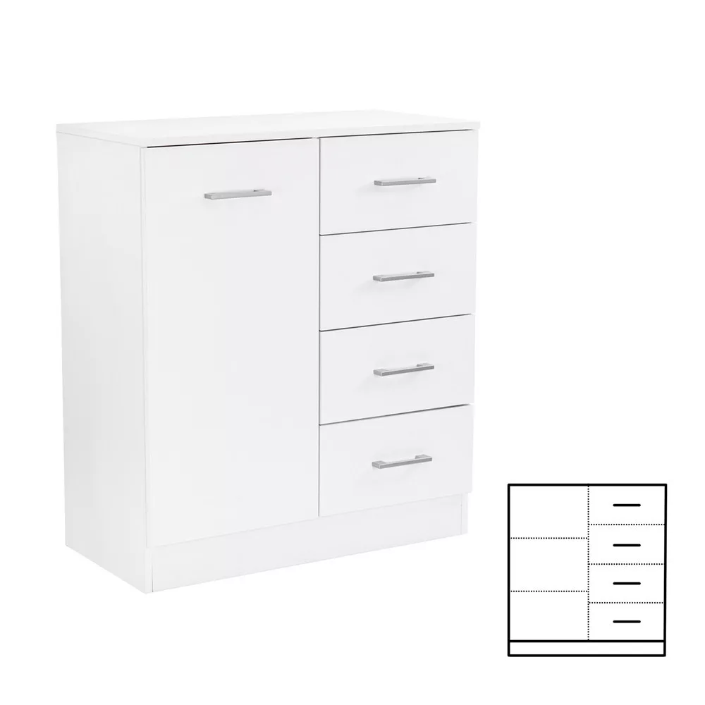 Kredens Miami 1 drzwi 4 szuflady 80x92 cm biało-biały