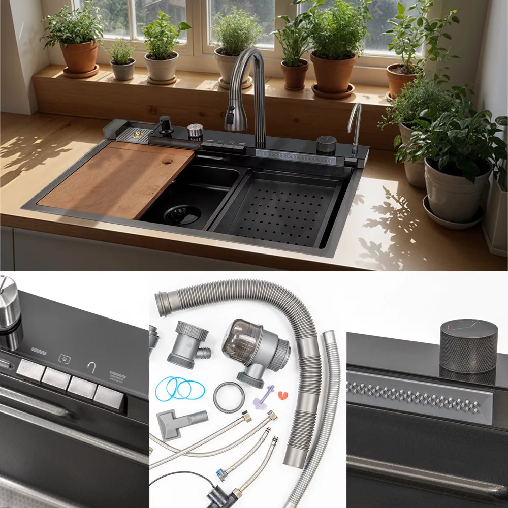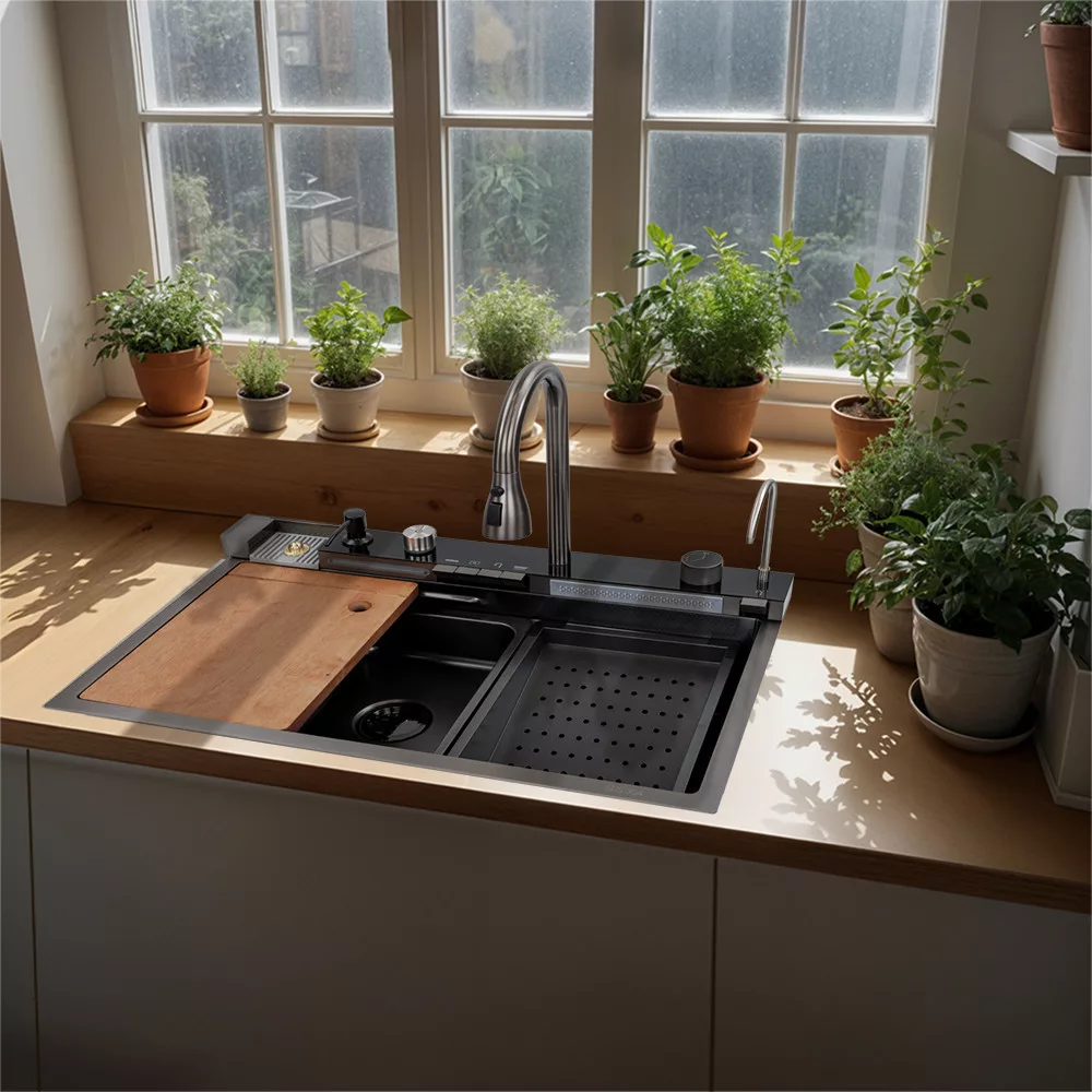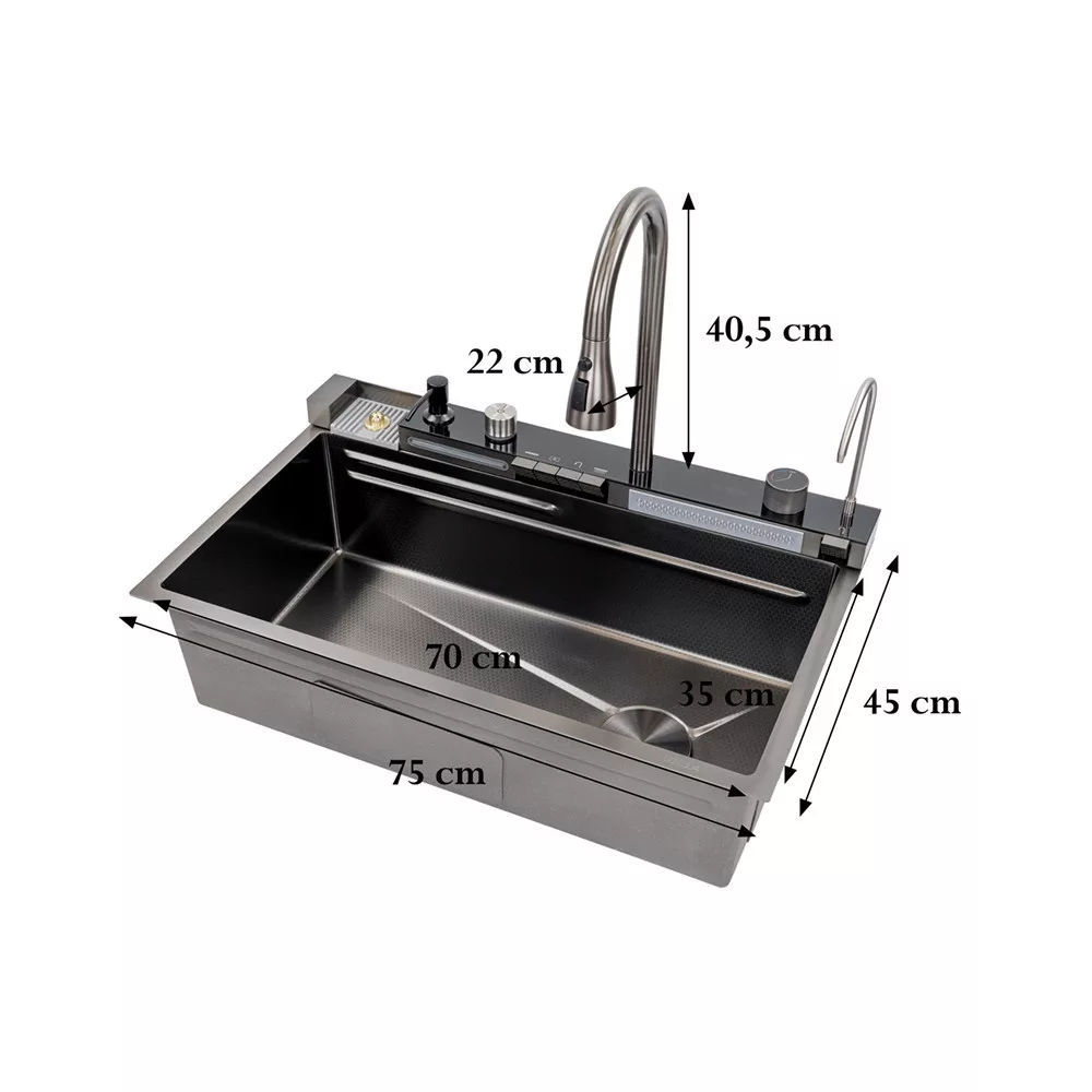 Wielofunkcyjny zlewozmywak ze stali nierdzewnej Catania z cyfrową baterią to wysokiej jakości zlewozmywak zaprojektowany specjalnie z myślą o nowoczesnych kuchniach. Produkt ten jest nie tylko praktyczny i funkcjonalny, ale także zachwyca stylowym i estetycznym wzornictwem.