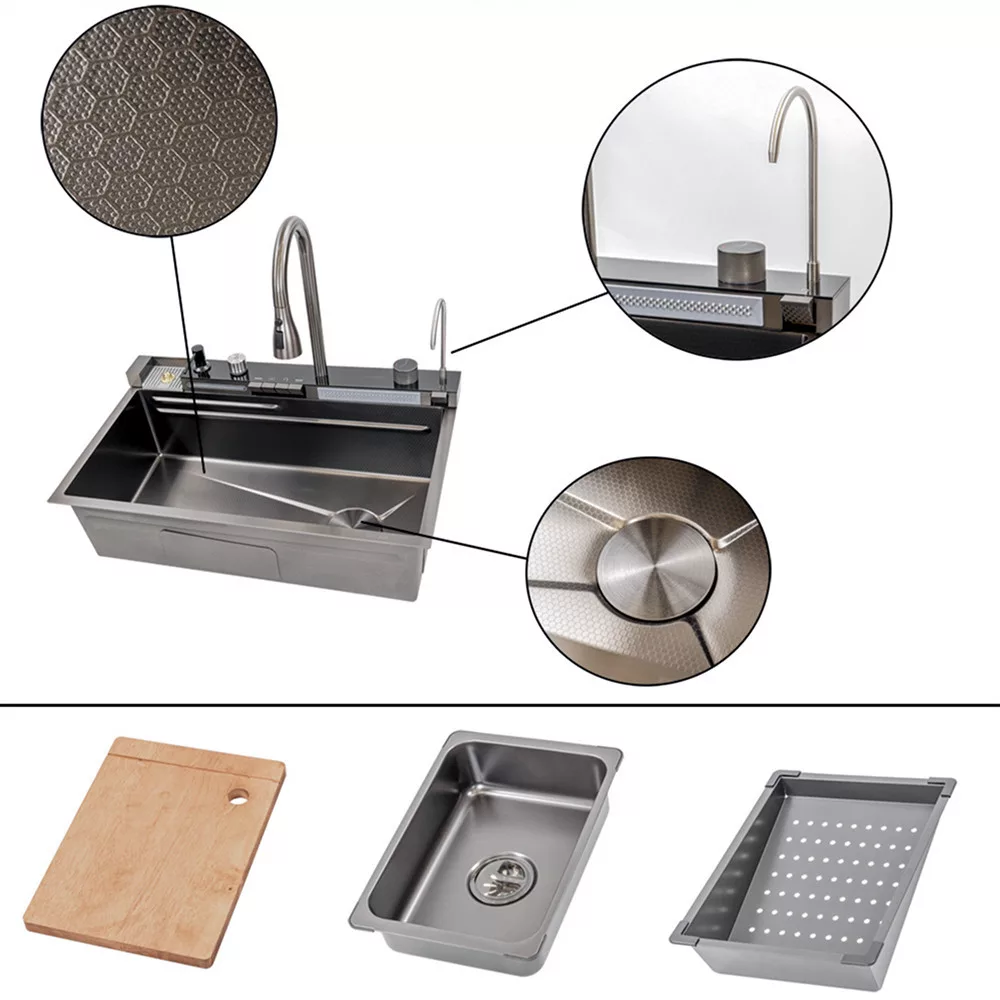 Wielofunkcyjny zlewozmywak Catania ze stali nierdzewnej z baterią cyfrową