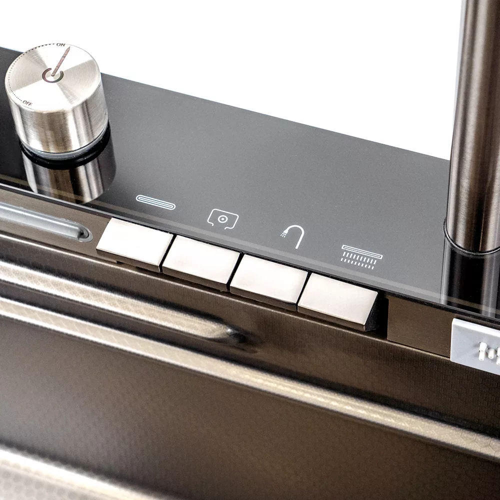 Dzięki wielofunkcyjnej konstrukcji zlewozmywak Catania oferuje wiele funkcji. Ważną cechą jest wbudowany kran, który pozwala ustawić dokładną temperaturę i ciśnienie wody. Zlewozmywak posiada również trzy różne tryby wypływu wody, gwarantując szybkie i dokładne zmywanie.