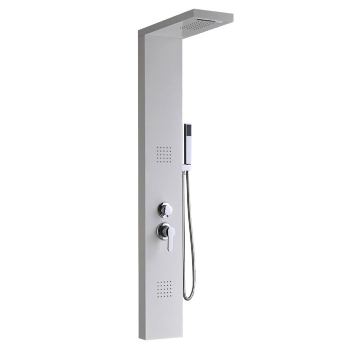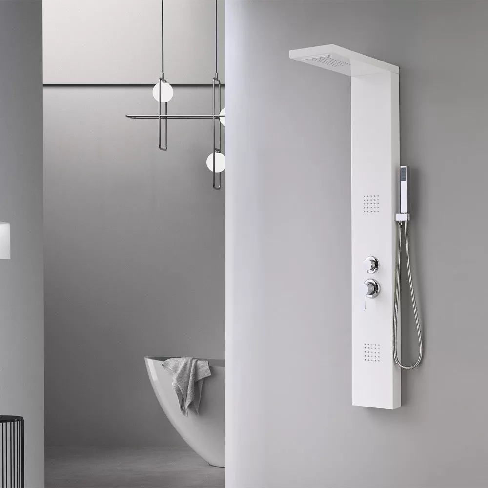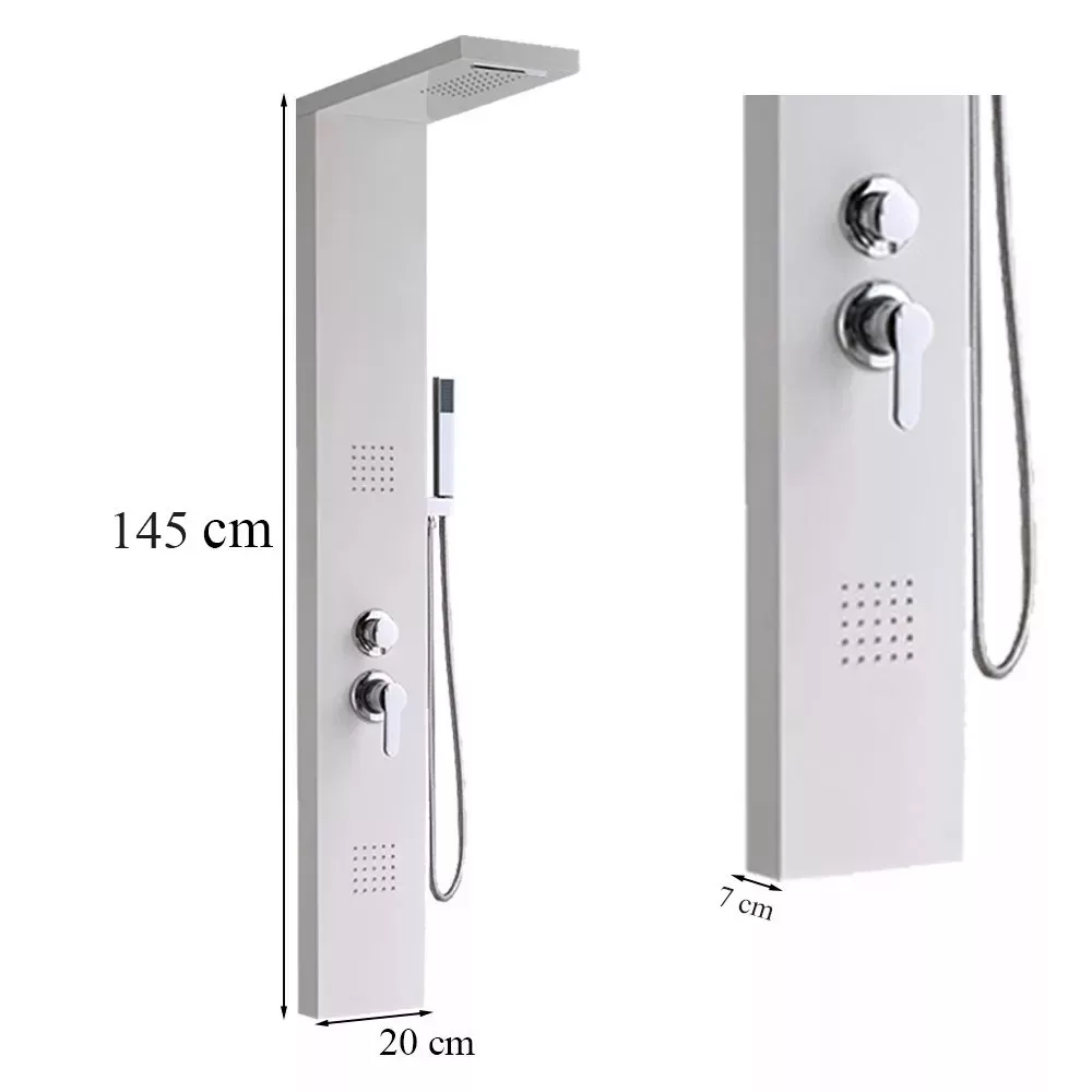 Panel prysznicowy z hydromasażem Malaga White to wspaniałe i nowoczesne rozwiązanie do łazienek, zapewniające luksusowe doznania podczas kąpieli. Ten panel prysznicowy został specjalnie zaprojektowany z myślą o komforcie i relaksie, a jego bogaty w funkcje i stylowy design sprawia, że staje się częścią wnętrza łazienki. Panel prysznicowy ma wymiary 145x20x7 cm. Wykonany jest z malowanego stopu aluminium, który jest mocny i trwały, a jednocześnie lekki i zachowuje estetyczny wygląd przez długi czas. Ten nowoczesny wybór materiału gwarantuje długą żywotność panelu prysznicowego.
