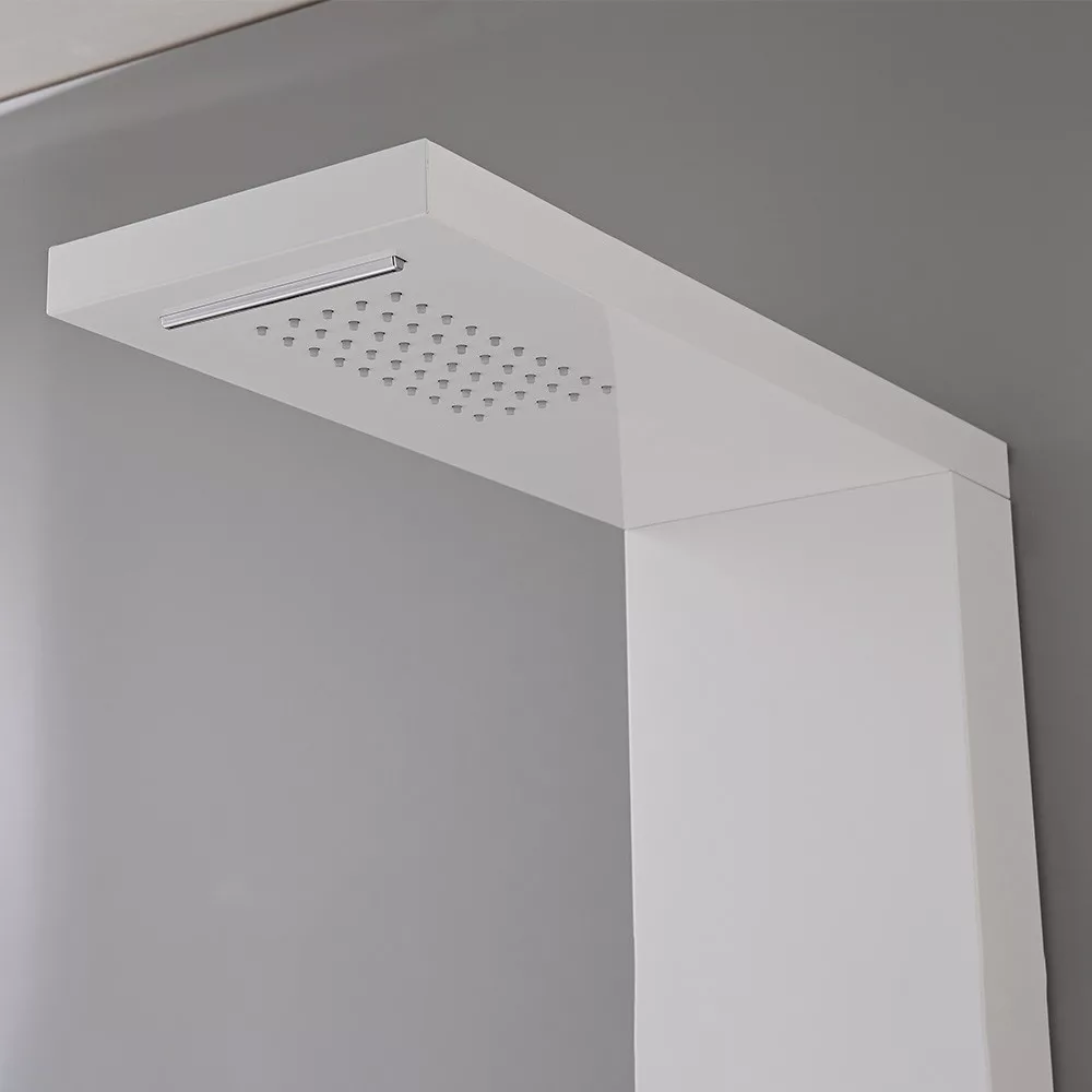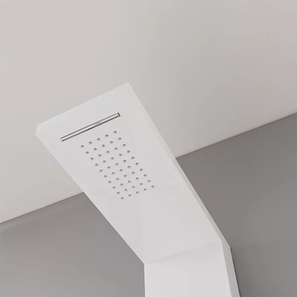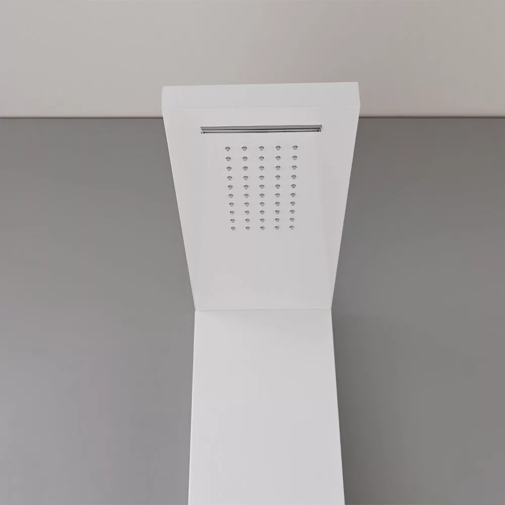 Jedną z głównych atrakcji panelu prysznicowego Malaga White są funkcje hydromasażu. Z tyłu panelu prysznicowego znajdują się 2 x 50 silikonowych dysz do masażu pleców, które rozpieszczają i relaksują plecy mocą strumieni wody. Ta funkcja masażu pomaga złagodzić napięcie i stres, a terapeutyczny efekt wody przyczynia się do całkowitego odprężenia ciała. W górnej części znajduje się 50 dysz zraszających, które dostarczają stały strumień wody przypominający przyjemny deszcz. Deszczownica zapewnia bogate doznania, jednocześnie kojąc ciało i umysł. Ponadto panel prysznicowy jest wyposażony w wodospad, który zapewnia dodatkowy relaks i zabawę.
