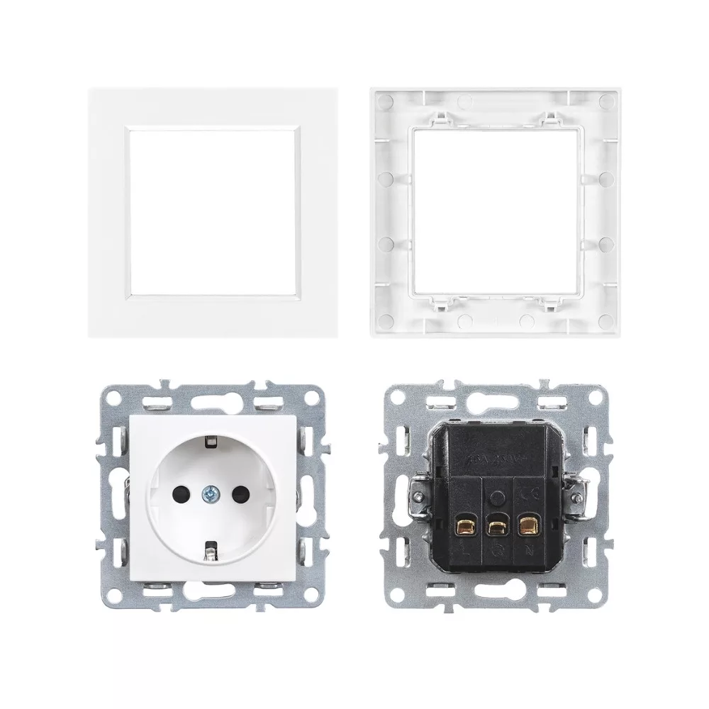 Gniazdo z uziemieniem Nova 16A 250V z białą ramką - niezawodne podłączenie zasilania, jednolity wygląd