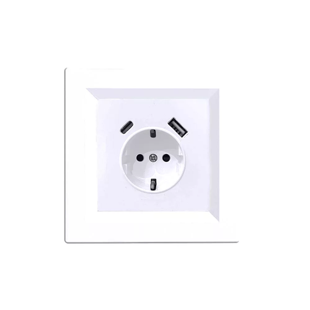- Typ: gniazdo z uziemieniem 2P+F z wbudowanym gniazdem ładowania USB-A i USB-C