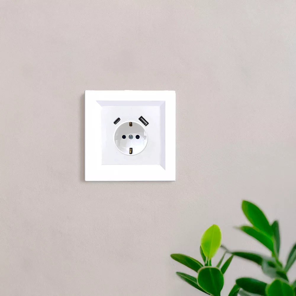 Gniazdo z uziemieniem Nova z wtyczką USB to innowacyjne rozwiązanie, które łączy w sobie funkcjonalność tradycyjnej wtyczki elektrycznej z praktyczną opcją ładowania USB. Wbudowane porty USB-A i USB-C umożliwiają ładowanie urządzeń o niskim poborze mocy, takich jak smartfony, słuchawki bezprzewodowe, smartwatche - bez konieczności stosowania osobnego zasilacza.