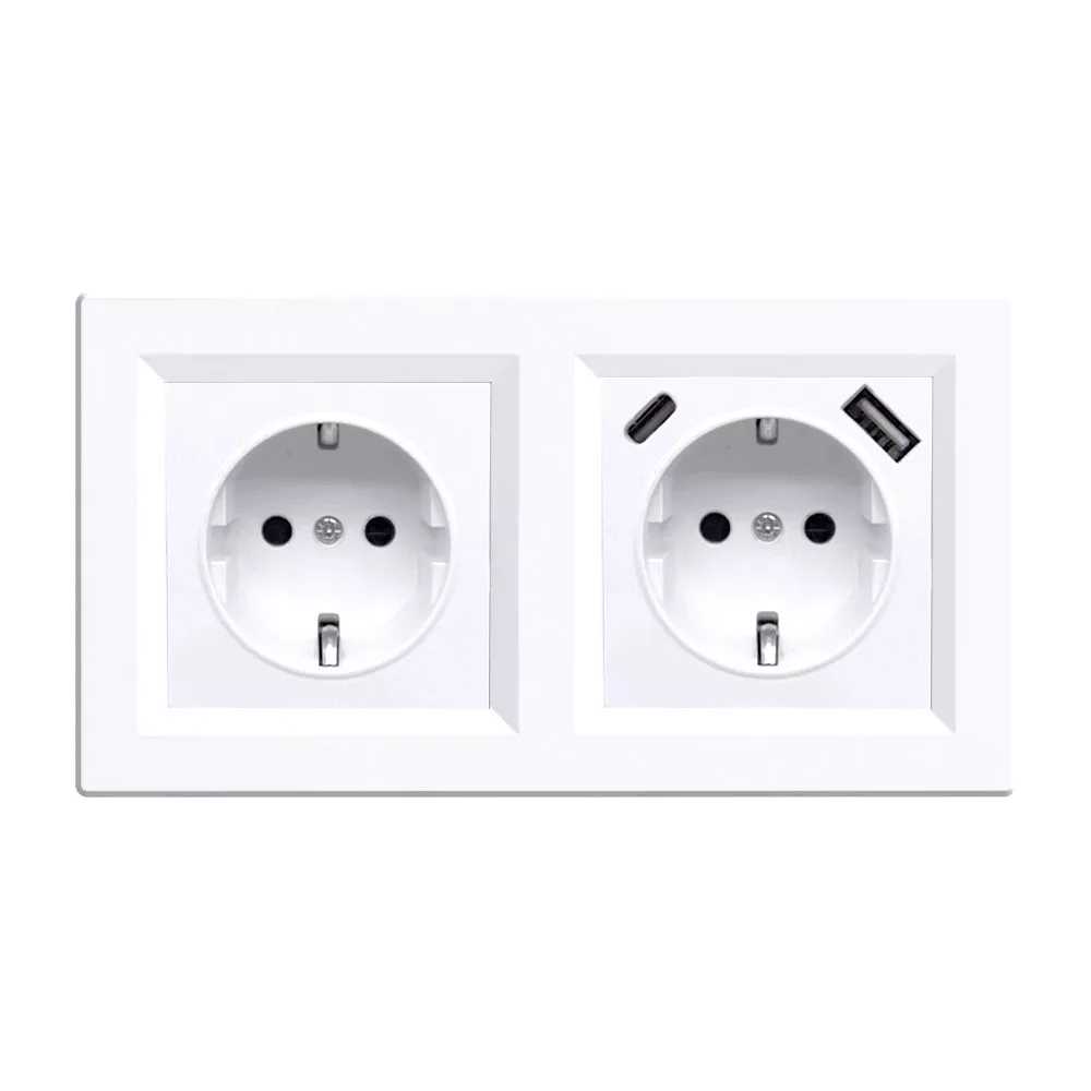 Nova gniazdo z uziemieniem 16A 250V USB z białą ramką - tradycyjne zasilanie i ładowanie USB w jednym stylowym urządzeniu