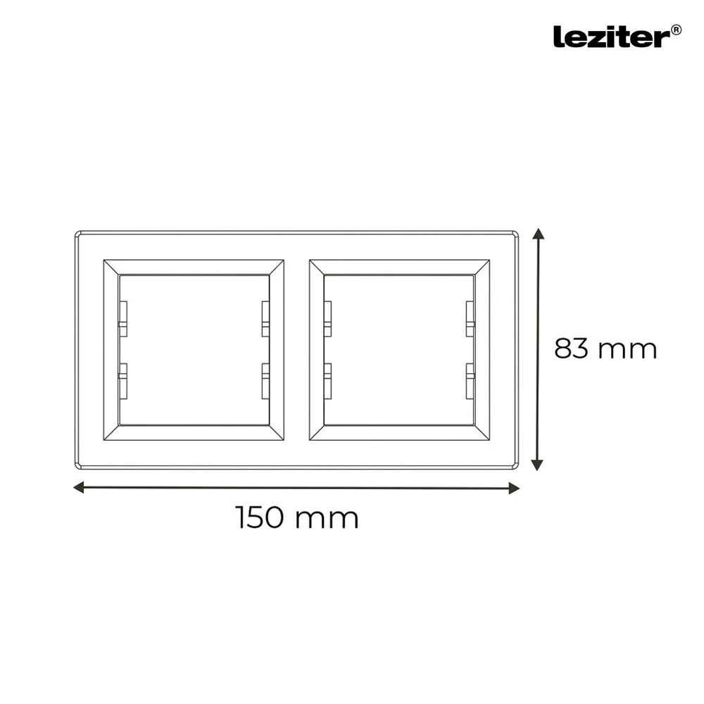 Ramka Leziter Nova 2 została zaprojektowana do estetycznego i stabilnego montażu na ścianie dwóch modułów (np. włącznika lub gniazda), kompatybilnych z bezramkowymi modułami serii Nova. Poziomy układ 83 × 150 mm z zaokrąglonymi krawędziami i zagłębioną konstrukcją zapewnia czysty wygląd, odpowiedni do stosowania wyłącznie w suchych, bezpyłowych środowiskach wewnętrznych.