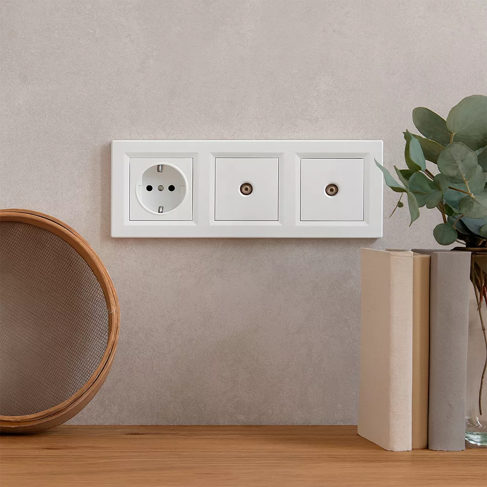 Rendeld meg most a Nova III földelt csatlakozóaljzatot kettő TV csatlakozóval, és egészítsd ki a rendszered stílusban és funkcióban is illeszkedő Nova keretekkel, kapcsolókkal, USB- és UTP aljzatokkal – minden, amire egy letisztult és megbízható beltéri szerelvényrendszerhez szükség van.