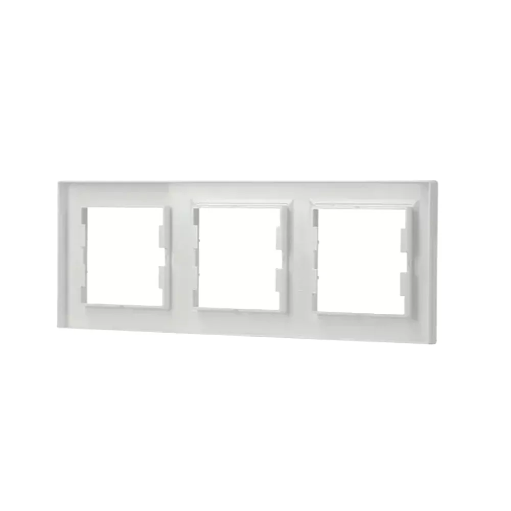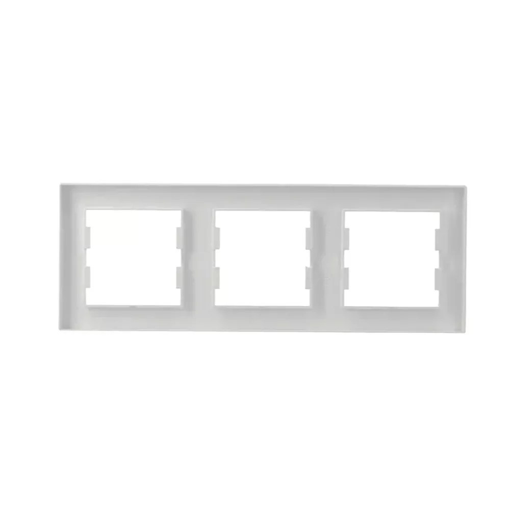 Nova potrójna ramka pozioma biała Typ: ramka 3 (układ poziomy) Konstrukcja: zaokrąglona krawędź Kolor: biały Rozmiar: 83 mm × 225 mm Kompatybilność: do bezramkowych modułów osprzętu z serii Nova Funkcjonalność, łatwość instalacji i środowisko zastosowania Ramka potrójna Leziter Nova została zaprojektowana do estetycznego i stabilnego montażu na ścianie trzech modułów (np. włącznika lub gniazda), kompatybilnych z bezramkowymi modułami serii Nova. Poziomy układ 83 × 225 mm z zaokrąglonymi krawędziami i wpuszczoną konstrukcją zapewnia czysty wygląd, odpowiedni do stosowania wyłącznie w suchych, wolnych od kurzu środowiskach wewnętrznych. Wybierz serię Nova, aby uzyskać kompletne, zintegrowane rozwiązanie!Zamów teraz potrójną ramkę poziomą Nova i uzupełnij swój system o przełączniki, gniazda, gniazda TV i UTP Nova, które pasują do siebie stylem i funkcjonalnością - wszystko, czego potrzebujesz do stworzenia czystego i niezawodnego systemu osprzętu wewnętrznego.