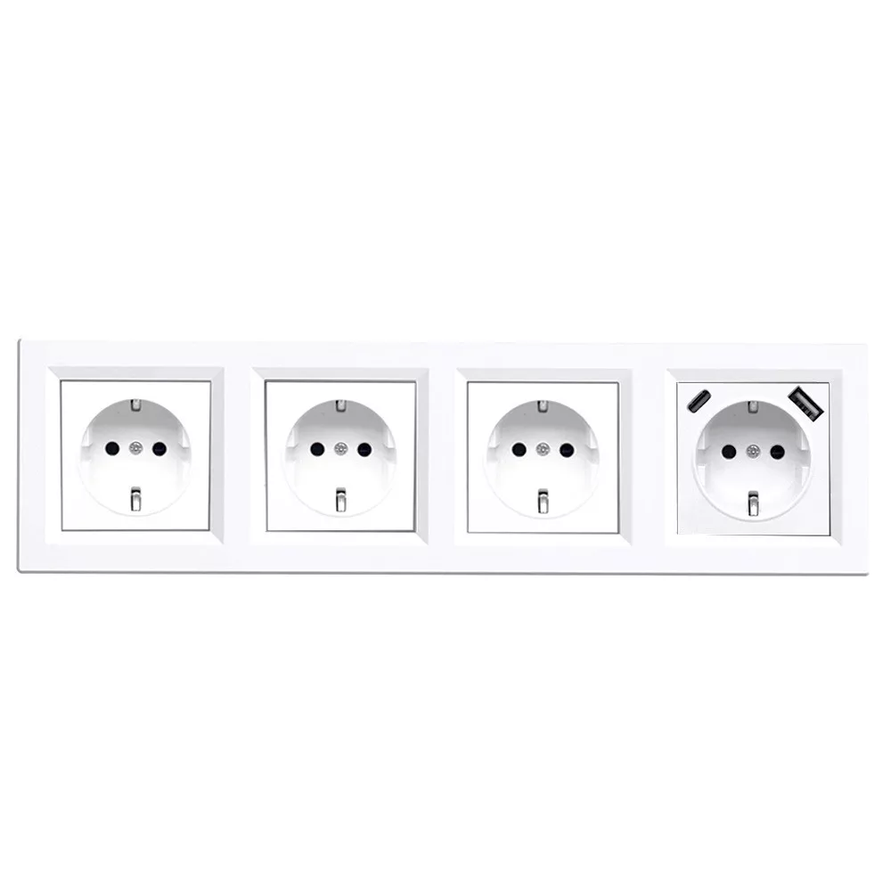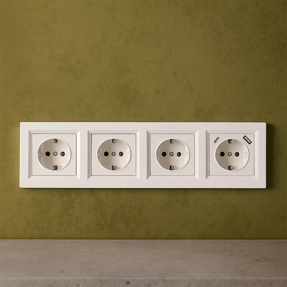 A Nova IV három földelt csatlakozóaljzat USB csatlakozóval egyesíti a hagyományos áramellátást és a közvetlen USB töltést. A dugaljak 16 A / 250 V értékekkel működnek, így alkalmasak nagyobb teljesítményű készülékekhez is, míg az USB-A és USB-C portok összesen 2A kimeneti áramerősséget biztosítanak, ideálisak telefonok, fülhallgatók vagy okosórák töltésére. Süllyesztett, keret nélküli moduláris kialakítása és a mellékelt fehér négyes keret modern, letisztult megjelenést ad. IP20 védettsége miatt kizárólag száraz, beltéri környezetben használható. A bekötést minden esetben szakképzett villanyszerelő végezze a szabványok szerint.