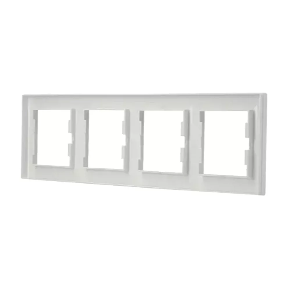 Ramka poczwórna Leziter Nova została zaprojektowana z myślą o estetycznym i stabilnym montażu na ścianie czterech modułów (np. włącznika lub gniazda), kompatybilnych z serią osprzętu bezramkowego Nova. Poziomy układ 83 × 300 mm z zaokrąglonymi krawędziami i wpuszczoną konstrukcją zapewnia czysty wygląd, odpowiedni do stosowania wyłącznie w suchych, bezpyłowych środowiskach wewnętrznych.