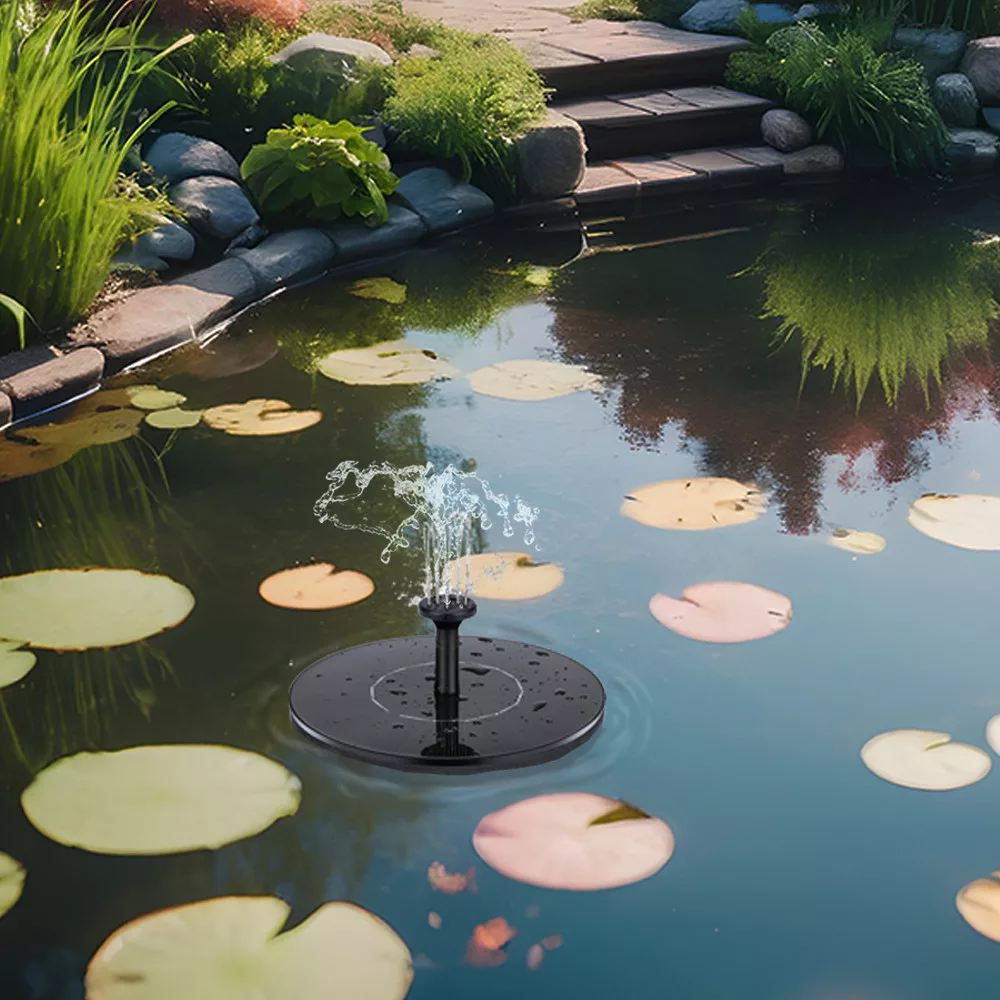 Po prostu umieść fontannę w słońcu i pozwól panelowi słonecznemu 7V, 1W zasilić ją - nie jest potrzebne żadne zewnętrzne źródło zasilania ani bateria. Kolumny wodne fontanny mogą wznosić się na wysokość do 50 cm.