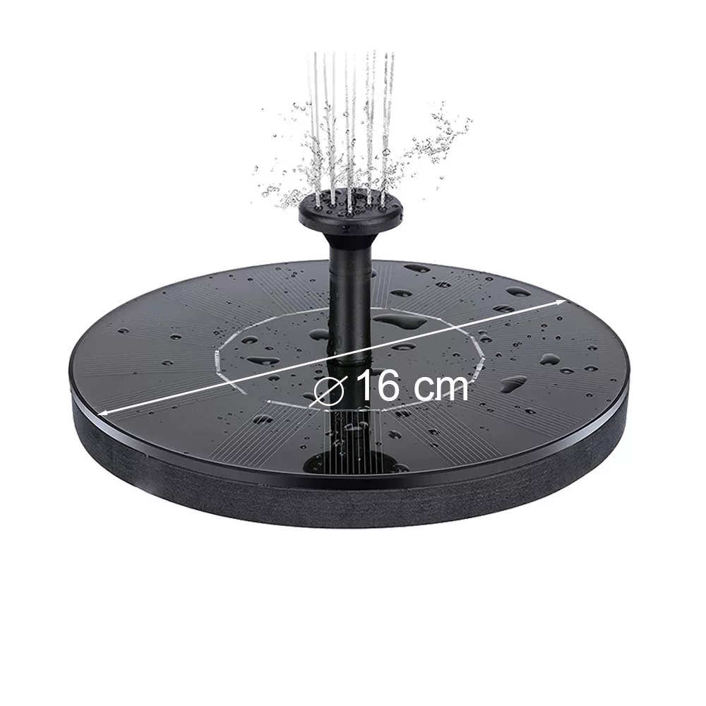 - Wymiary: fontanna solarna o średnicy 16 cm.