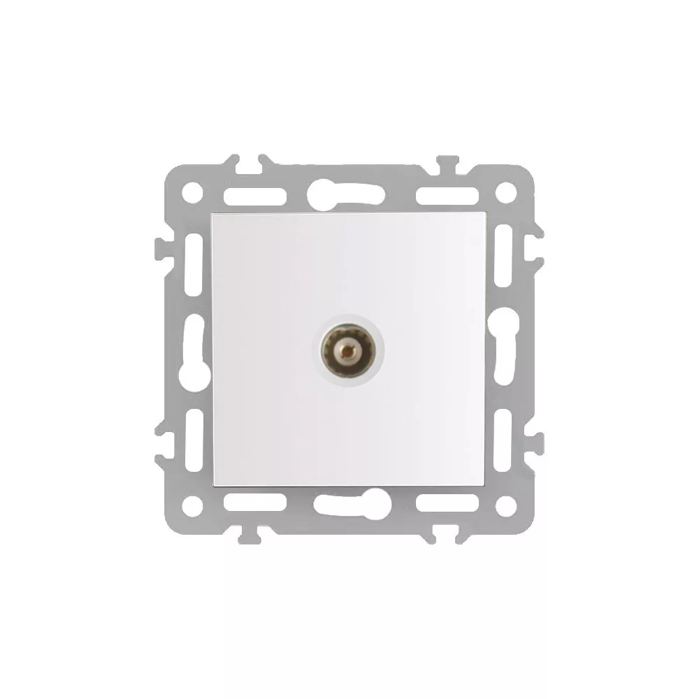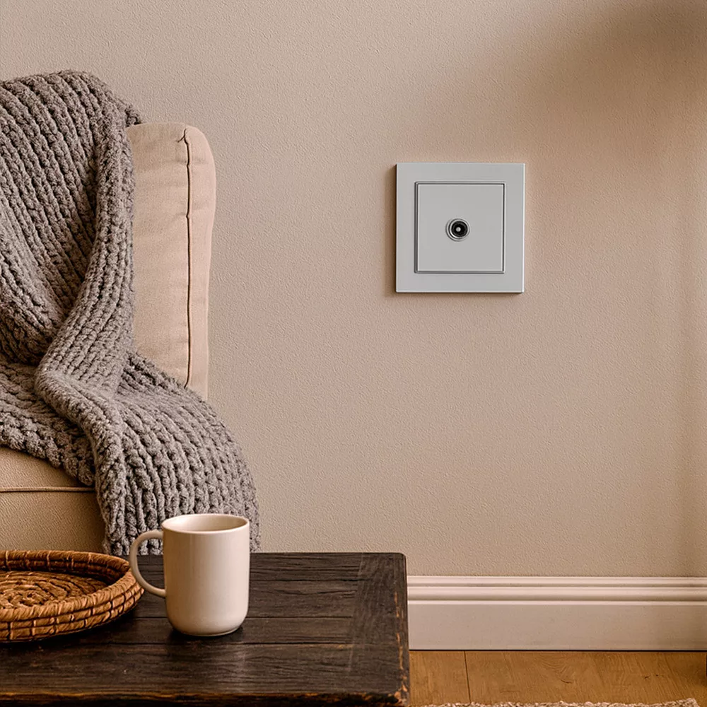 Gniazdo Nova TV umożliwia niezawodne i estetyczne podłączenie telewizorów, jednostek wewnętrznych i innych urządzeń przystosowanych do odbioru antenowego. Gniazdo koncentryczne RF zapewnia stabilne połączenie dla doskonałej jakości obrazu i dźwięku. Jego wpuszczana konstrukcja pozwala na dyskretne wkomponowanie go w systemy montażu ściennego, a jego bezramkowa konstrukcja tworzy nowoczesny, czysty wygląd. Do użytku w pomieszczeniach zamkniętych, suchych i wolnych od kurzu, takich jak salony, sypialnie lub biura. Instalacja powinna być zawsze przeprowadzana przez wykwalifikowanego elektryka.