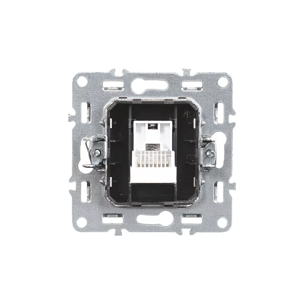 Gniazdo UTP Leziter Nova posiada złącze typu RJ45 do przewodowych połączeń sieciowych Ethernet dla komputerów, routerów, telewizorów Smart TV lub innych urządzeń sieciowych. Produkt jest podtynkowy, przykręcany i kompatybilny ze standardowymi systemami montażu modułowego. Bezramkowa konstrukcja modułu bazowego pozwala również na integrację z wieloma rodzinami opraw. Czysta, zaokrąglona forma zapewnia nowoczesny wygląd wnętrza. Produkt ma stopień ochrony IP20 i może być używany wyłącznie w bezpyłowym, suchym środowisku wewnętrznym (np. gabinet, salon, sala konferencyjna, przestrzeń biurowa). Podłączenie kabla sieciowego i instalacja muszą być wykonane przez wykwalifikowanego technika zgodnie z odpowiednimi normami.