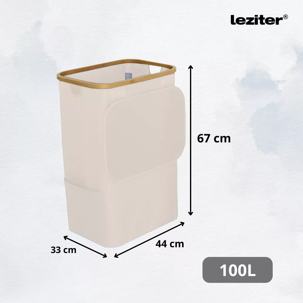 Ten 100-litrowy kosz na pranie Leziter to idealny wybór do łazienki lub sypialni, jeśli zależy Ci na dużej pojemności i czystym wyglądzie. Dzięki wyjmowanemu workowi wewnętrznemu z zakładkami sortowanie przed praniem jest szybkie i higieniczne. Jego solidna, oszczędzająca miejsce konstrukcja i naturalna kolorystyka sprawiają, że idealnie nadaje się do nowoczesnych domów.