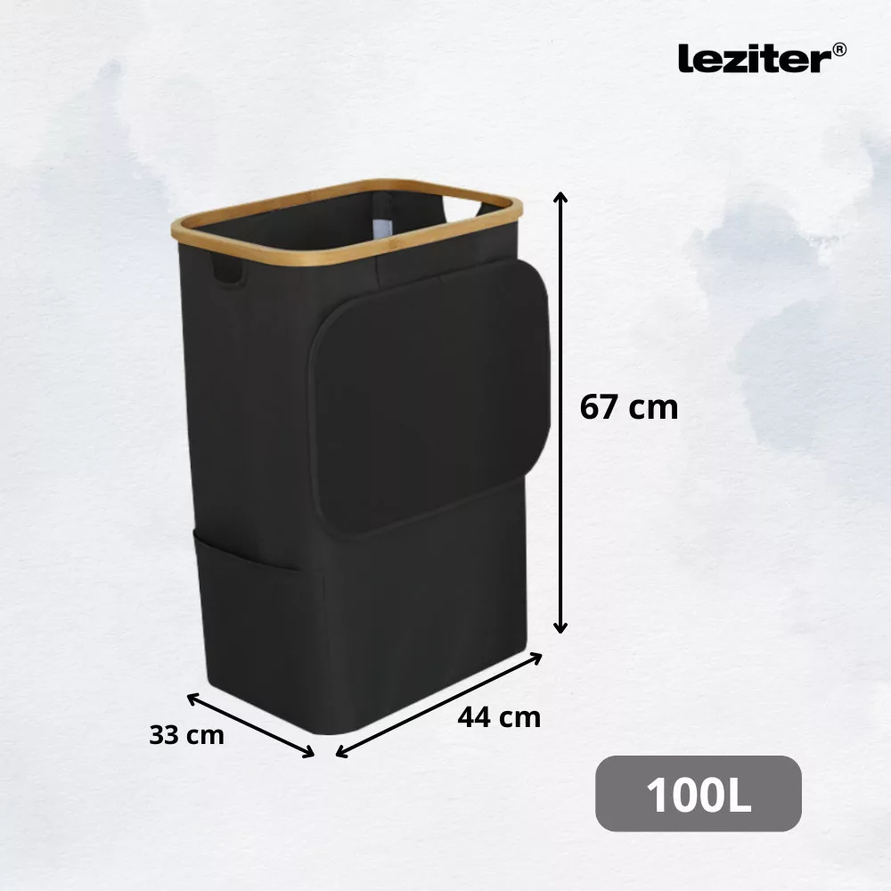 Ten 100-litrowy kosz na pranie Leziter to idealny wybór do łazienki lub sypialni, jeśli zależy Ci na dużej pojemności i czystym wyglądzie. Dzięki wyjmowanemu workowi wewnętrznemu z zakładkami sortowanie przed praniem jest szybkie i higieniczne. Jego solidna, oszczędzająca miejsce konstrukcja i naturalna kolorystyka sprawiają, że idealnie nadaje się do nowoczesnych domów.