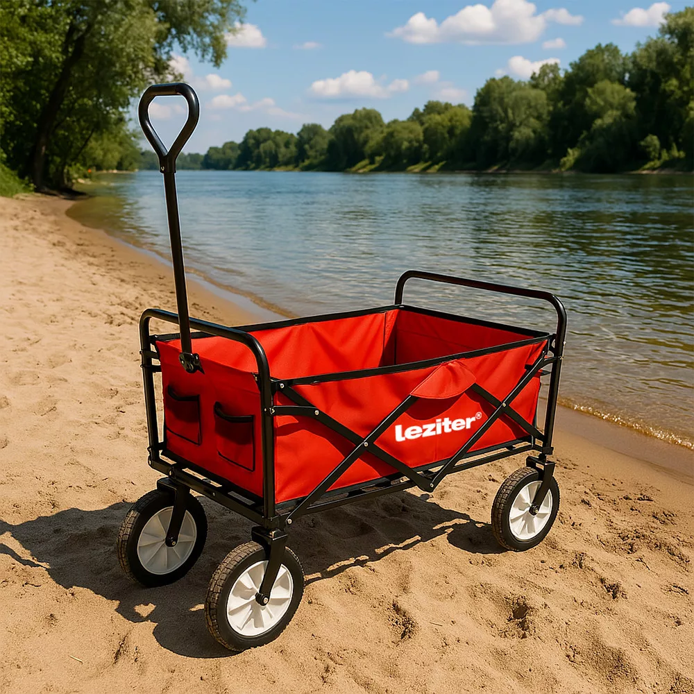 Czerwony składany wózek plażowy: styl i wygoda w jednym