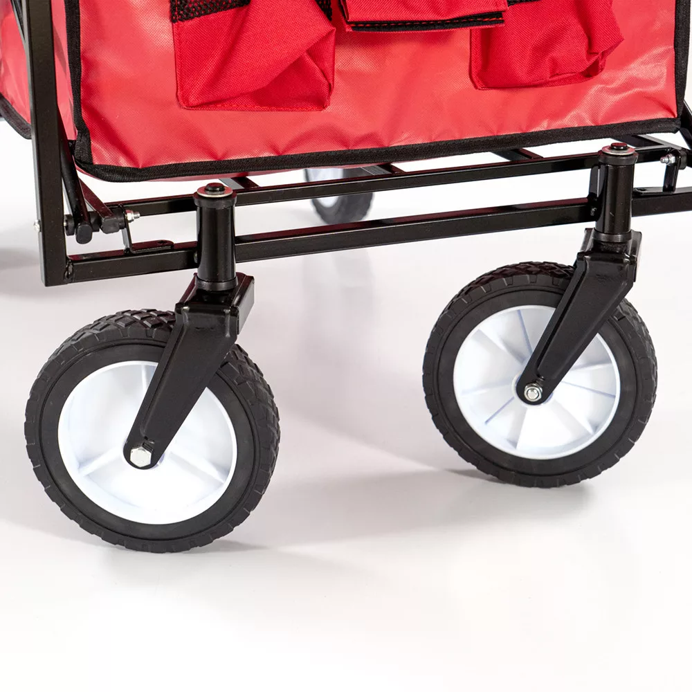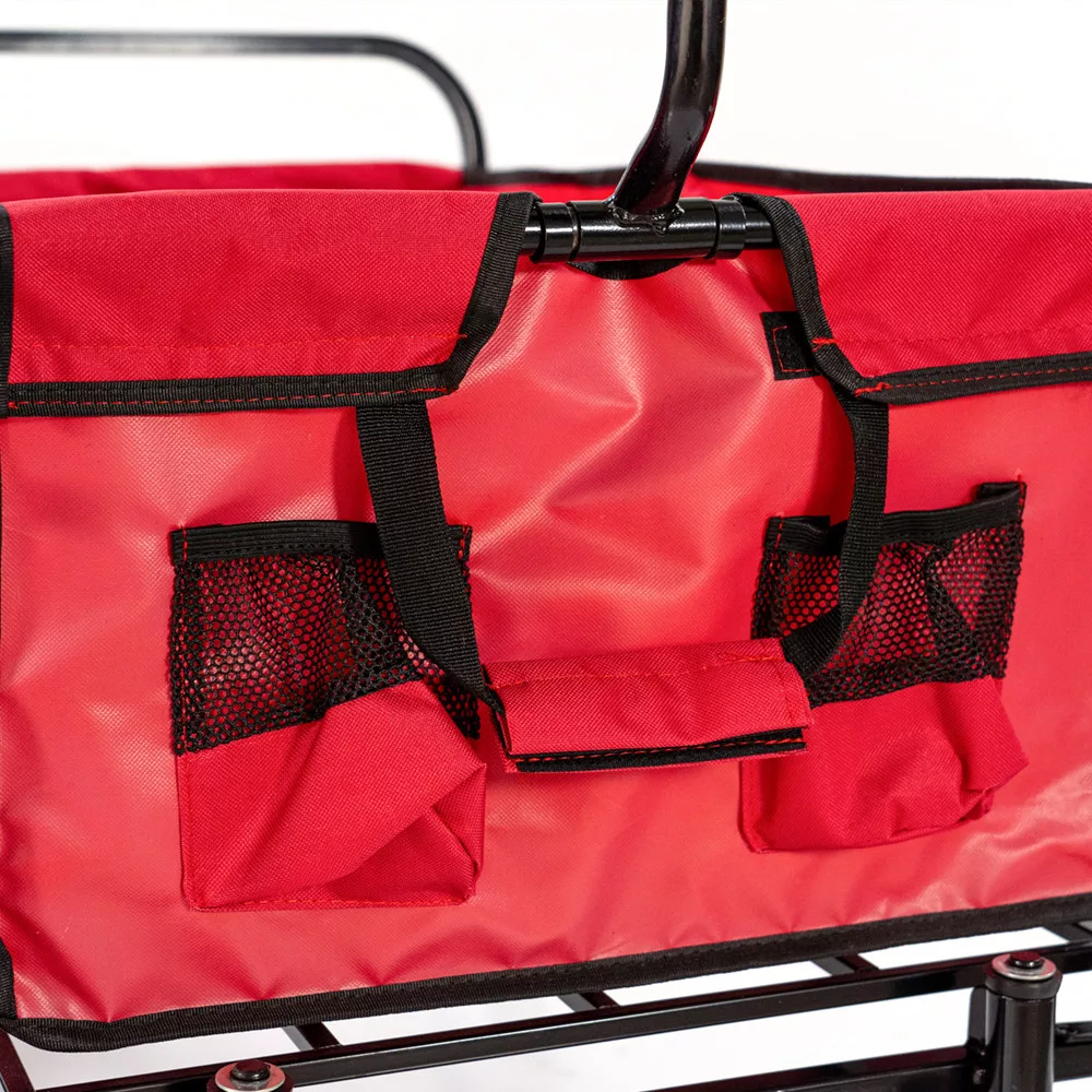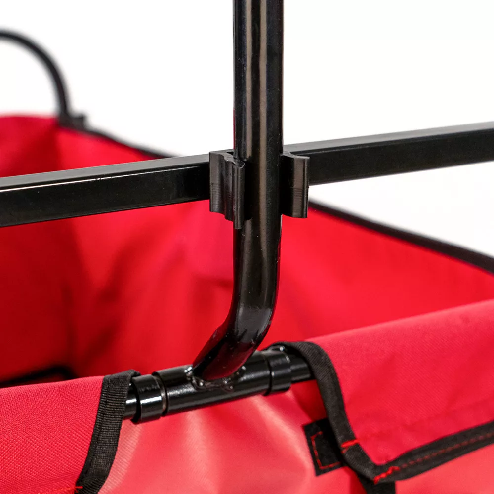 Materiał. Kosz wykonany jest z tkaniny poliestrowej 600D, która jest nie tylko mocna i trwała, ale także łatwa do czyszczenia. A jaskrawoczerwony kolor nadaje wózkowi przyciągający wzrok wygląd.