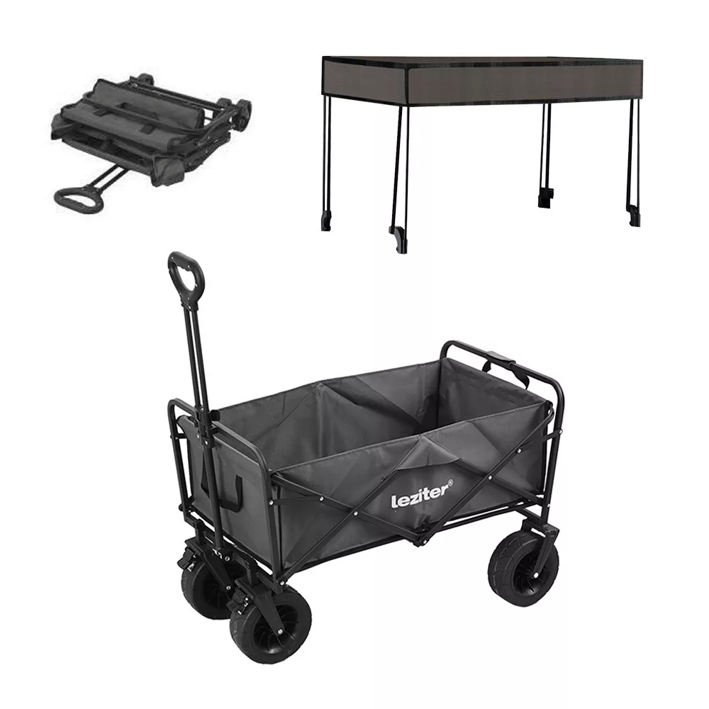 Wybierz składany wózek plażowy Leziter premium z daszkiem zacieniającym i spraw, by Twoje aktywności na świeżym powietrzu były wygodniejsze, lżejsze i bardziej zacienione - za każdym razem!