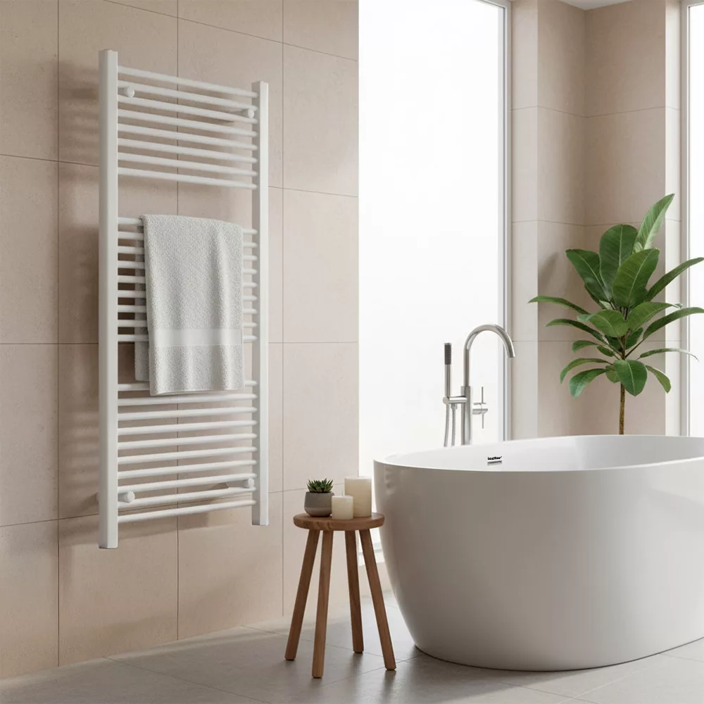 Wybierz grzejnik Leziter Straight Towel Dryer Radiator 1200x600 mm w kolorze białym i uczyń swoją łazienkę jeszcze bardziej stylową i komfortową - każdego dnia!